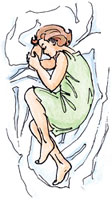 Etwa 59 % aller Menschen schlafen auf der Seite. Dabei liegt man mit beiden Beinen angewinkelt auf der Seite eingerollt. Hierbei gibt es einen Unterschied, und zwar ob die Beine nur leicht oder stärker angewinkelt werden.Nur leicht angezogene Knie zeugen von einem gesunden Menschenverstand, Ausgeglichenheit und Fairness.