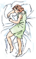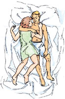 Bei dieser Schlafstellung ist das Paar eng aneinandergeschmiegt.Dieses zeigt ein intensives Wir-Gefühl und große Vertrautheit. So schlafen sehr verliebte Paare.