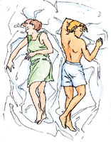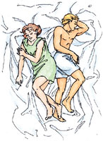 In diesem Fall kehren sich beide Personen den Rücken zu. Dieser Abstand kann verdeutlichen, dass auch sonst jeder der beiden sein eigenes Leben lebt und es diverse Probleme in der Partnerschaft gibt.Allerdings wird diese Schlafposition auch dann gewählt, wenn langanhaltender Stress an der Tagesordnung ist.