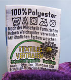 Der Begriff "Öko" impliziert aber beim ökologisch orientierten Endverbraucher grundlegende Positionen, wie ökologischer Landbau ohne den Einsatz von beispielsweise Pestiziden, keine Genmanipulationen, sogenannte "Biologische Baumwolle", faire Arbeitsbedingungen bei Erzeugern und Herstellern, keinerlei Kinderarbeit und vieles mehr. Alle diese für den Öko-Kunden wichtigen Grundlagen spielen beim Oeko-Tex®-Standard eine eher untergeordnete Rolle. Sogar Textilien aus Kunstfasern wie Polyester können das Siegel des Oeko-Tex® Standard 100 erhalten, wie man auf diesem Foto deutlich sehen kann.
