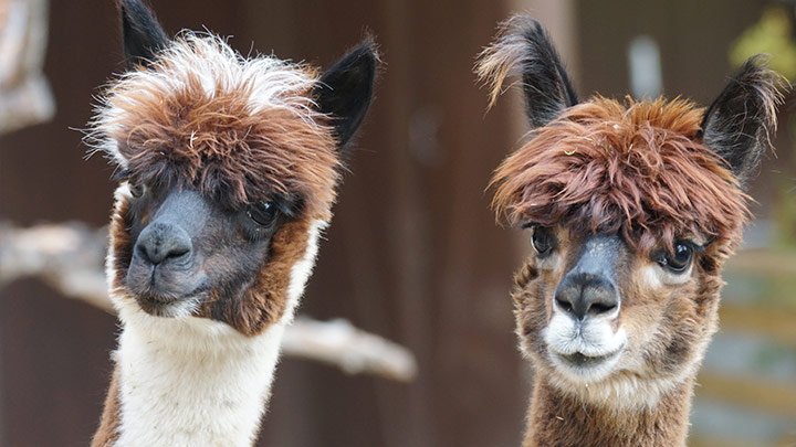 Alpakas sind neugierige kleine Hauskamele, die den Lamas verblüffend ähnlich sehen. Sie leben in den Hochebenen der Anden unter extremen klimatischen Bedingungen und erreichen eine Schulterhöhe von einem Meter bei einem Gewicht von 50-100 kg.Das Fell der Alpakas ist meist dunkelbraun, schwarz oder grau gefärbt. Ihre Zähne wachsen ständig nach, um der hohen Abnutzung durch das karge Grün entgegenzuwirken. Unter den Huftieren ist dies einmalig.