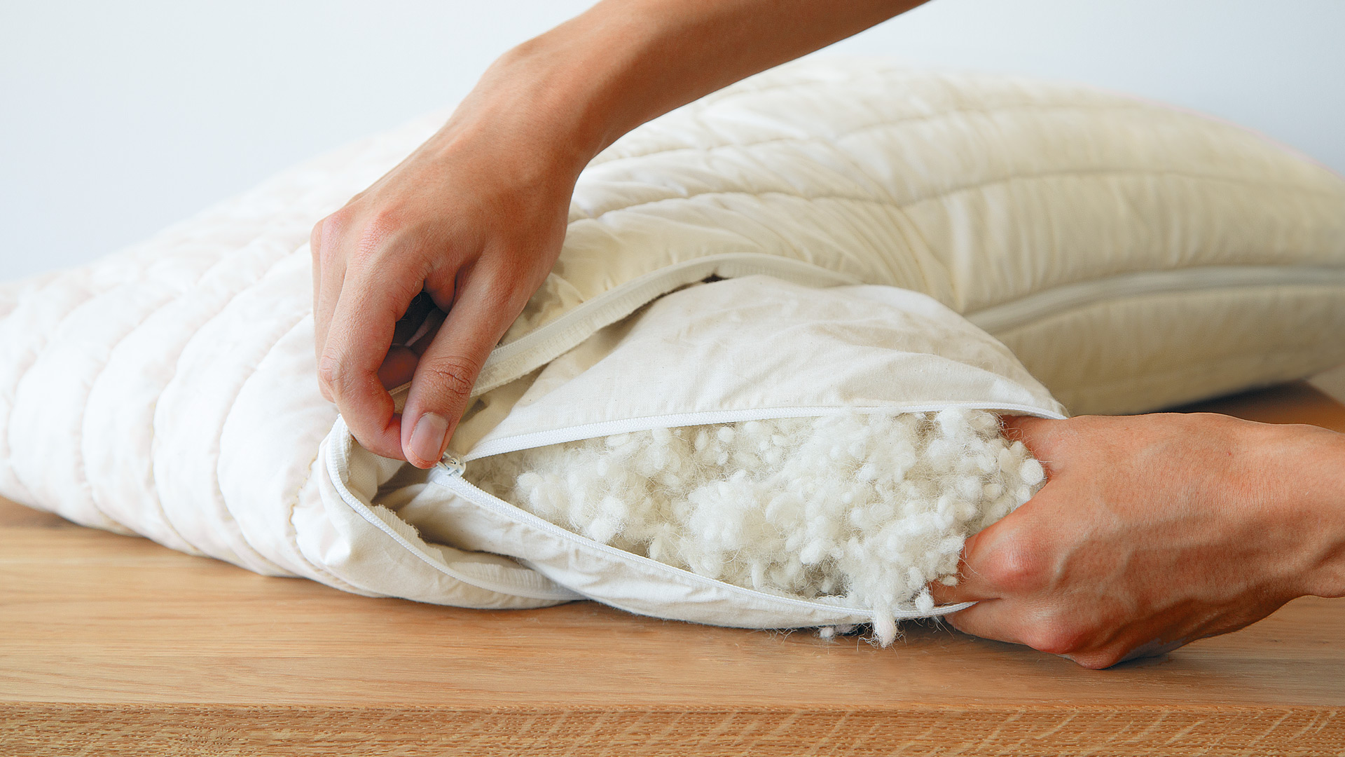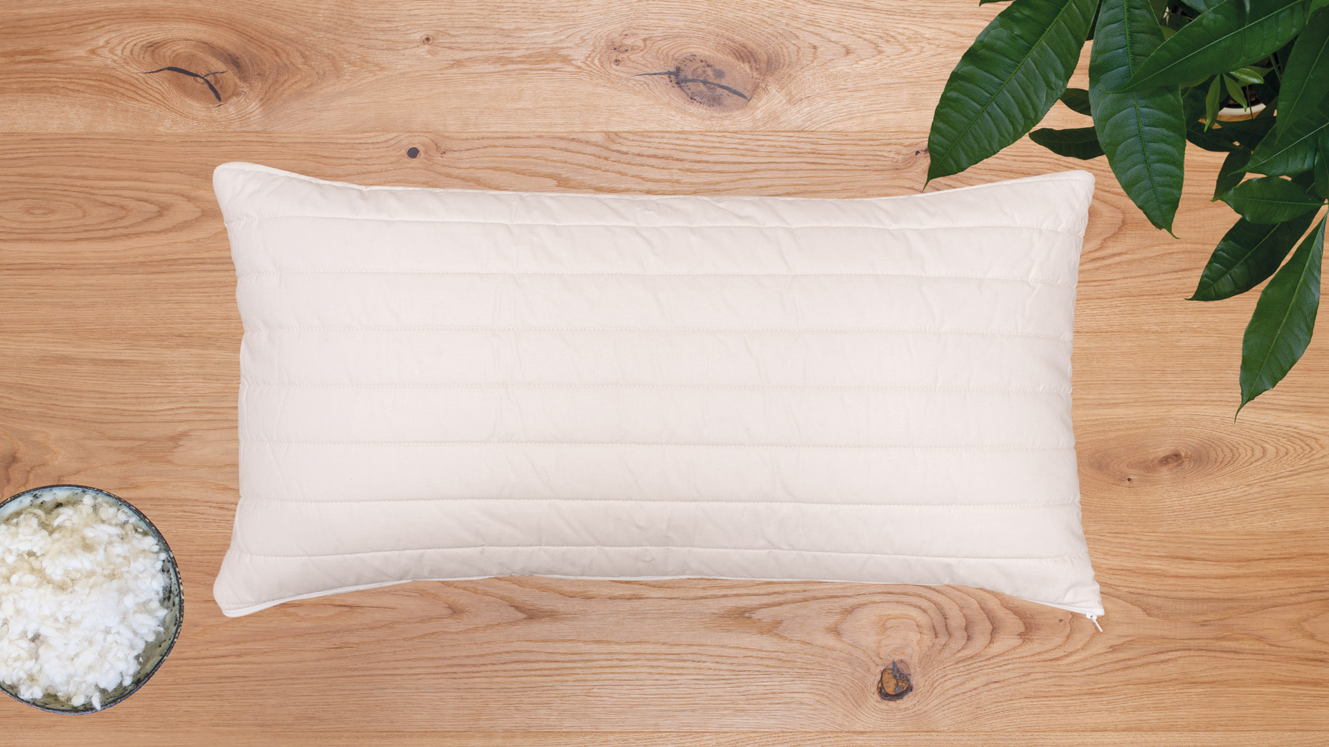 Elastisch-weiche Kügelchen aus 60 % Alpakawolle und 40 % kbT-Schafschurwolle im Innenbezug mit Reißverschluss. Atmungsaktiv, feuchtigkeits-ausgleichend und hautsympathisch.