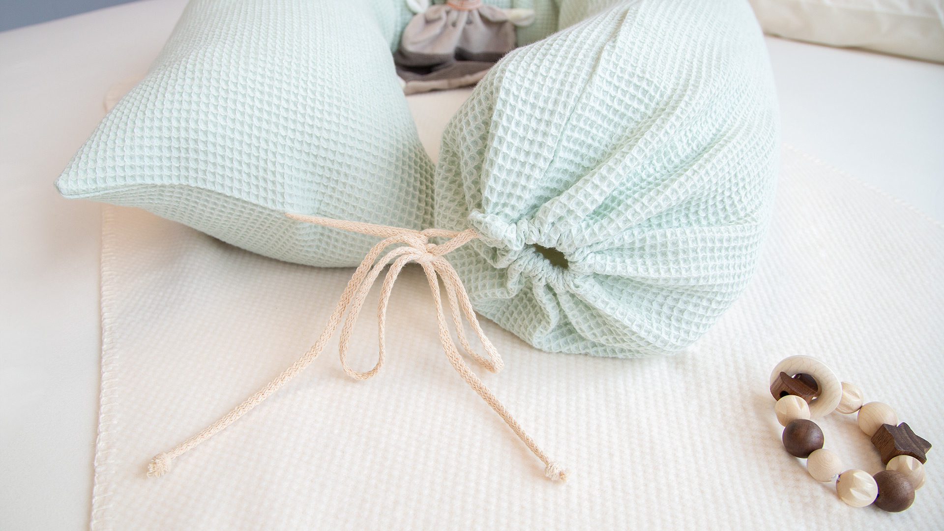Ob liebevolles Stillen oder stundenlanges Kuscheln, der Außenbezug für das Stillkissen "Mana" lässt Sie alles um sich herum vergessen. Der weiche Waffelpikee-Bezug besteht aus 100 % Bio-Baumwolle. Durch das einfache Auf- und Zuziehen der Kordel, kann der Bezug im Handumdrehen abgezogen und bei 40 °C gewaschen werden. Das schafft unbeschwerte und kuschelweiche Stunden für Sie und Ihrem kleinen Schatz.