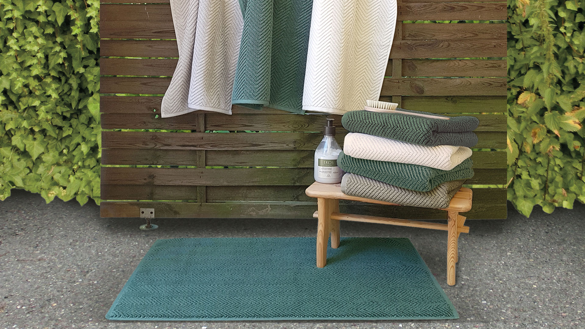... denn mit Badematte "Ondara" treten Sie nach der erfrischenden Dusche auf flauschigen Untergrund. Der spezielle Bauschfrottier mit offener Zwirnung aus 100 % Bio-Baumwolle ist besonders saugfähig und schmeichelt Ihren Füßen. Mit seinem eleganten Fischgrät-Muster setzt die gemütliche Matte wohnliche Akzente in Ihrem Bad.
