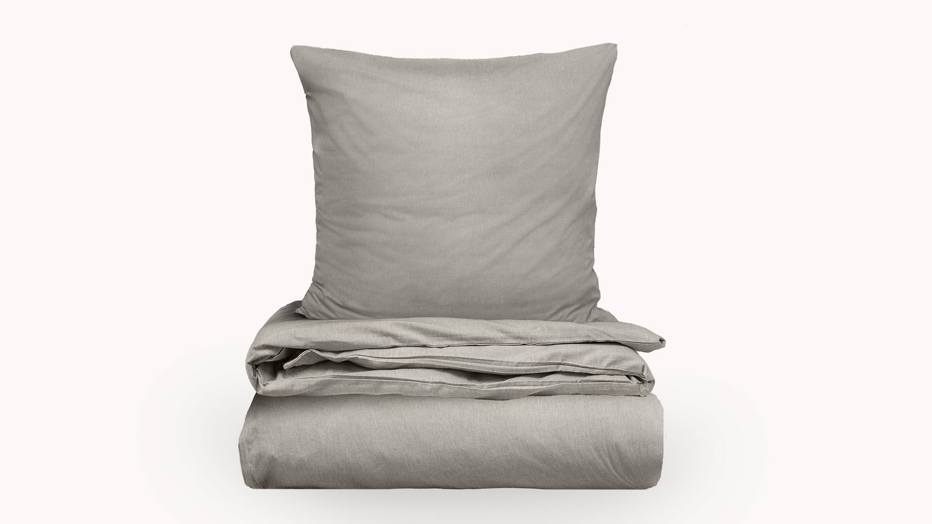 Die Baumwoll-Bettwäsche "Fintaro" ist Ihr kuschlig-weicher Begleiter in edler Melange-Optik. Die schönen Grau-Braun-Töne werten jedes Schlafzimmer elegant auf. Der anschmiegsame Stoff aus 100 % Bio-Baumwolle wiegt Sie Nacht für Nacht weich in den Schlaf - egal zu welcher Jahreszeit.