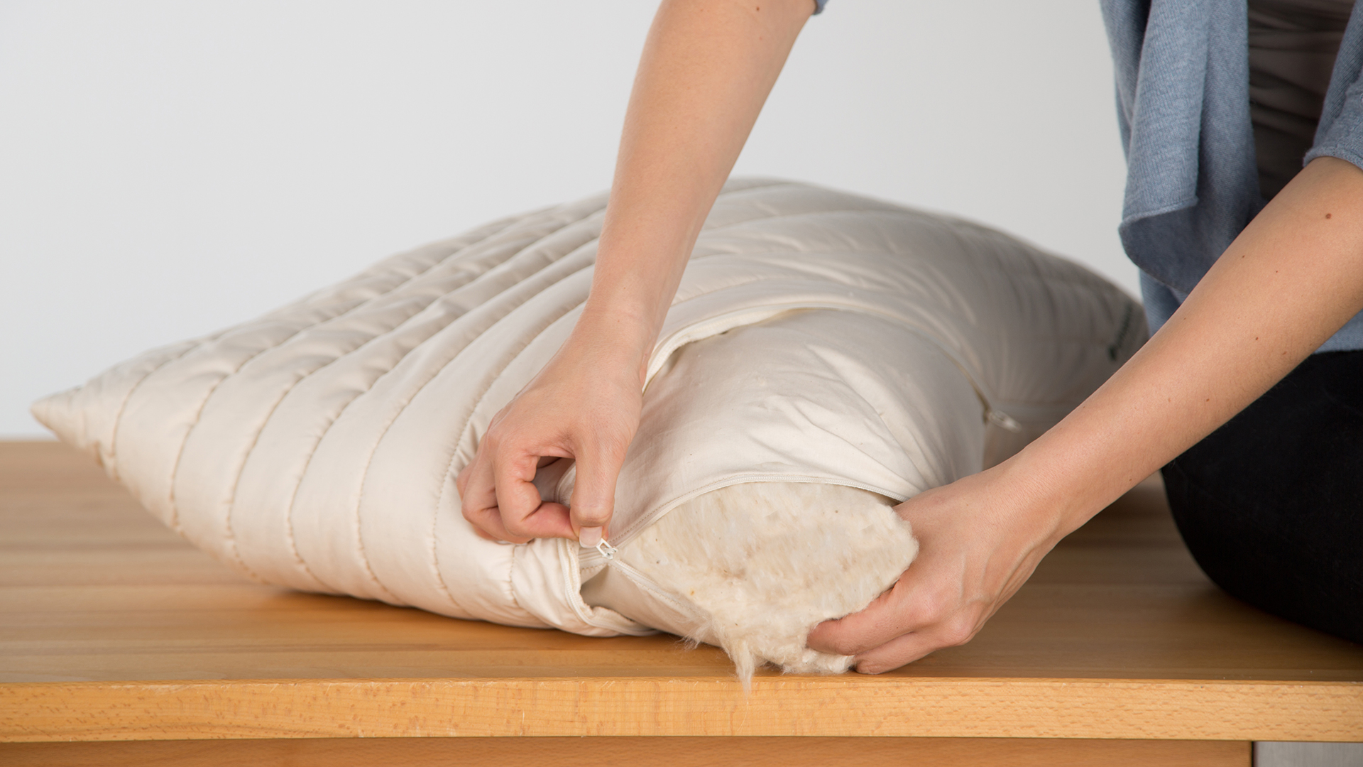 100 % Bio-Baumwolle in einem separaten Innenbezug mit Reißverschluss. Atmungsaktiv, feuchtigkeits-ausgleichend, hautsympathisch und weitgehend antistatisch.