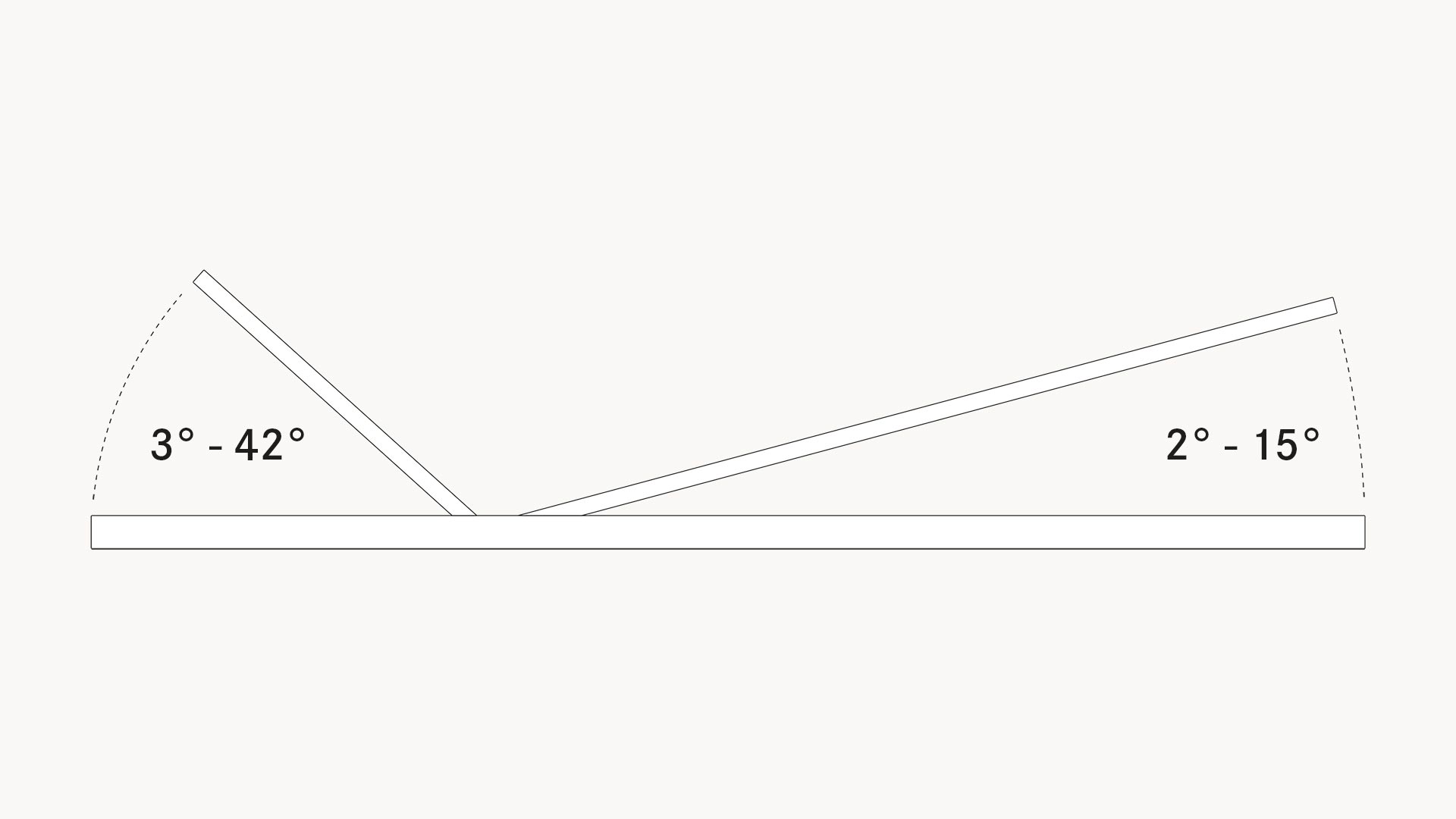 Auf Wunsch mit verstellbarem Kopf- und Fußteil. 11-stufige Verstellung, am Kopfende von 3°-42° und beim Fußende von 2°-15°.