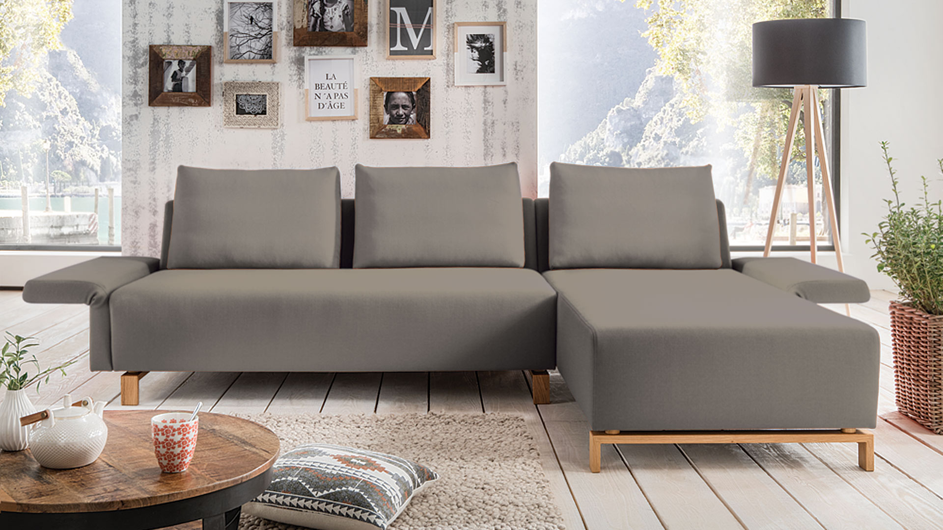 Mit stufenlos klappbaren Armlehnen wird "Fino" auch im Handumdrehen zur praktischen Ablage für Ihre Lieblingslektüre, Snacks und Co. Entscheiden Sie sich zwischen der Variante mit starren Armlehnen oder der Ausführung mit 1 oder 2 klappbaren Armlehnen. Sie möchten keine Holzkufen an Ihrem Sofa? Kein Problem - Sie haben die Wahl zwischen den Kufen in ruhiger Buche oder markanter Eiche.