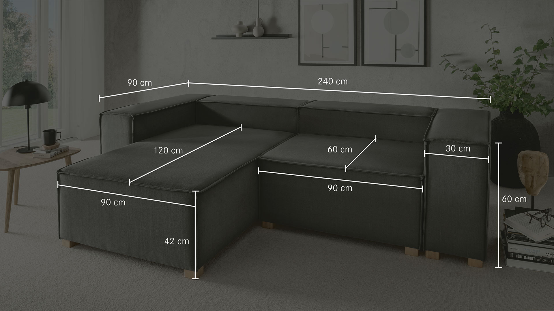 Die Recamiere lässt sich übrigens links oder rechts anbringen - so wie sie am besten in Ihrem Raum passt. Auch wenn Sie mal das Zimmer umstellen wollen, ist ein Umbau der Recamiere auf die andere Seite dank der cleveren Verbindungsbügel kein Problem. Couch "Fovera" ist in 8 charaktervollen Farben verfügbar.