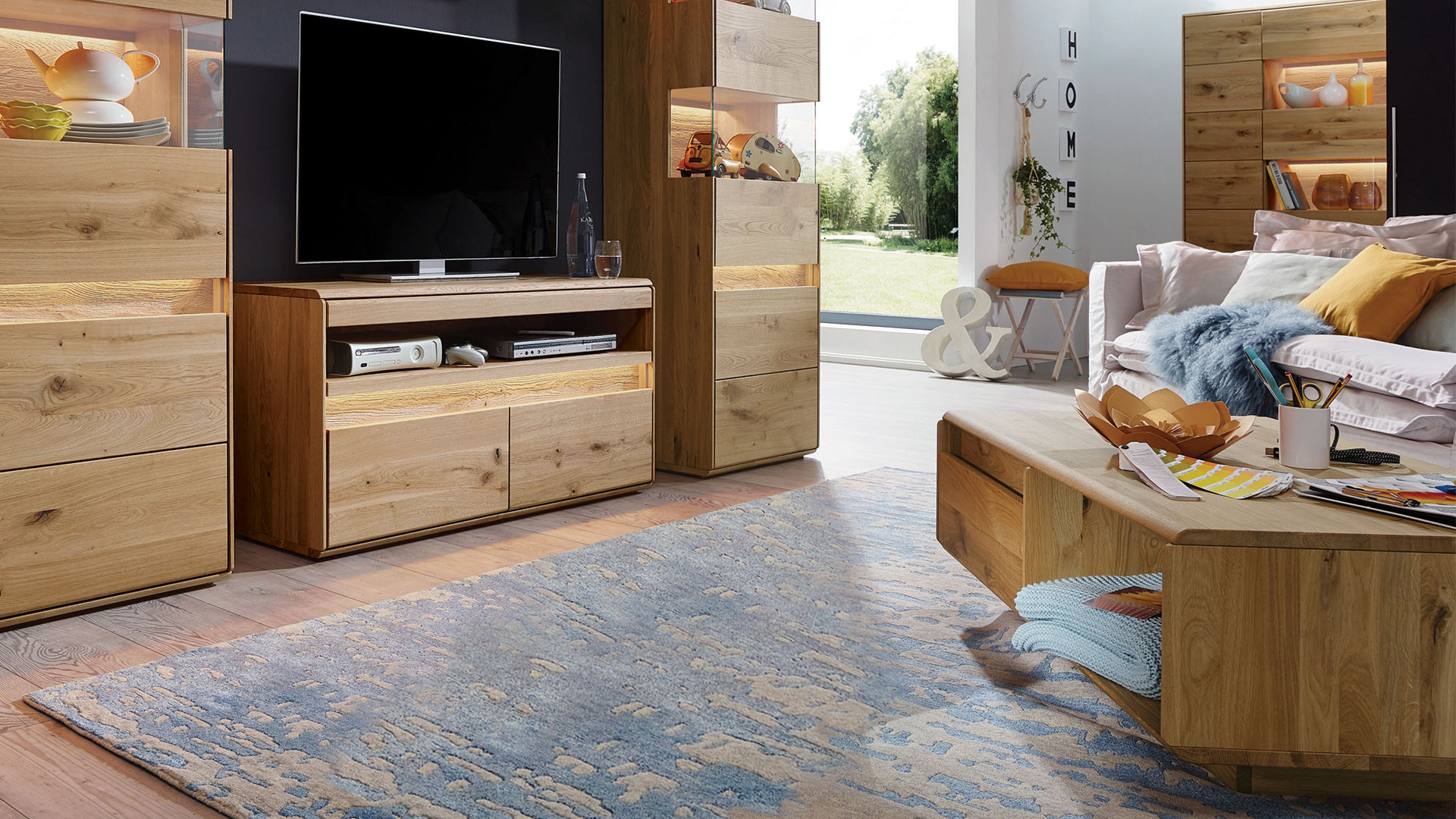 Das lebhafte Kernbuchen- oder edle Wildeichenholz bringt natürlichen Charme in Ihr Zuhause. Verwirklichen Sie mit Programm "Bassano" Ihren ganz persönlichen Wohntraum.
