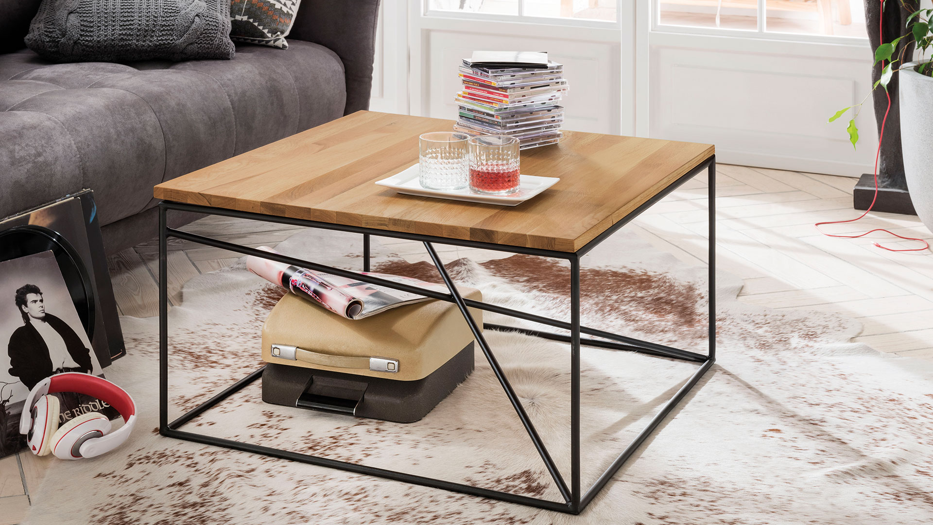 Der einzigartige Charakter der lebhaften Kernbuche oder der edlen Wildeiche macht diesen Couchtisch zu einem attraktiven Hingucker. Die raffiniert gestaltete Unterkonstruktion mit Querstreben verleiht diesem Prachtstück das gewisse Etwas. Wählen Sie aus zwei Größen Ihr neues Lieblings-Möbelstück.