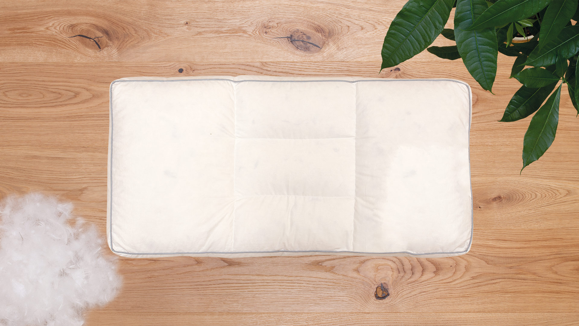 Unser Spezialkissen "Ansara-Ergo" ist anatomisch optimiert, sodass der sensible Nackenbereich sowohl in der Rücken- als auch in der Seitenlage optimal gestützt wird. Eine Vielzahl von Fixierungs-Stegen und ein aufwändig gearbeitetes 5-Kammern-System verhindern das Verrutschen der hochwertigen Daunen-Füllung.