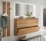 Das moderne Programm ist wahlweise mit trendiger Spiegel-Beleuchtung oder schwarzer Glas-Deckplatte erhältlich.