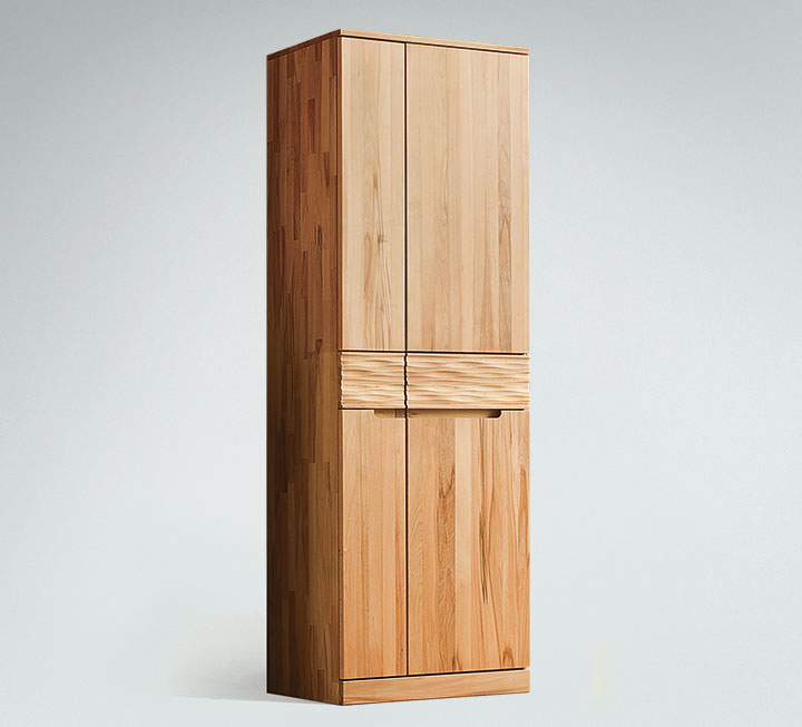 Nicht jedes Design ist in allen Holzarten erhältlich, da nicht jede Holzart zu jedem Design passt. So ist die Auswahl an sich schon etwas eingeschränkter. Ein Schrank aus Buche massiv wirkt ruhig und fügt sich fast überall harmonisch ein. Dielenschränke in lebhaft gemaserter Kernbuche massiv wirken etwas schwungvoller. In edler Wildeiche massiv wird Ihr Garderobenschrank zu einem höchst attraktiven Blickfang. Lassen Sie sich von er Vielfalt der Produkte verzaubern.