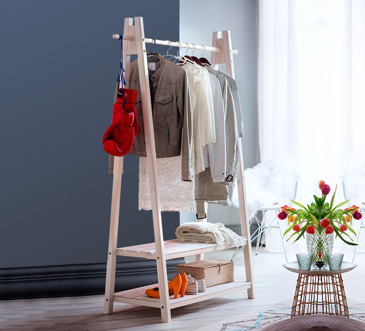 Zur absoluten Grundausstattung im Flur gehört die Garderobe. Sie haben die Wahl zwischen einem Garderobenpaneel mit Metall-Haken oder einer Garderobe mit Querstange, die viel Platz für Kleiderbügel bietet.