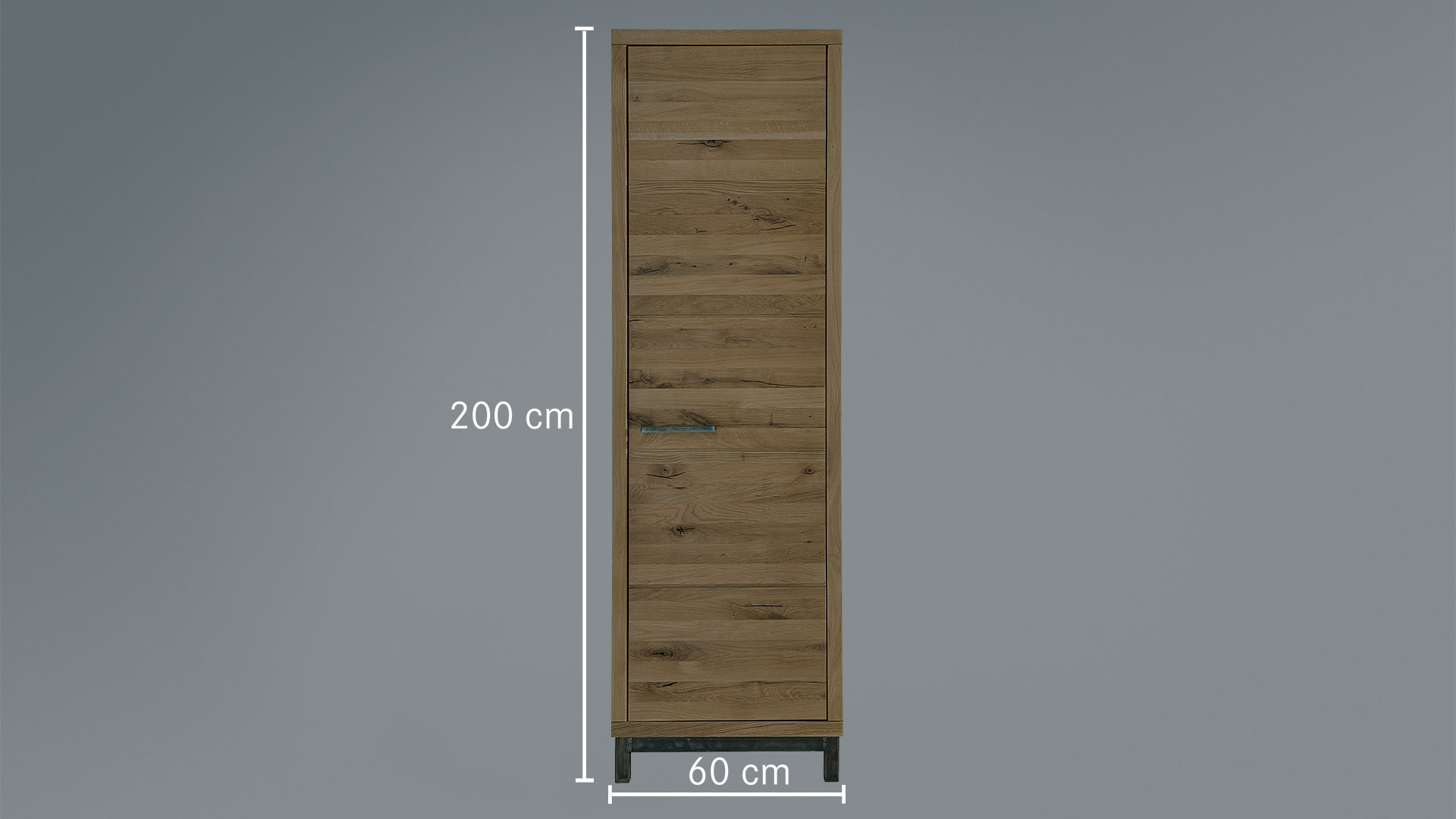 Die mit dezenten Querfugen gestaltete Türe ist bündig in den Korpus eingearbeitet. Der geradlinige Dielenschrank im modernen Industriestil steht auf einem Fußelement aus geschwärztem Metall. Passend dazu sind die Bügelgriffe gewählt."Locana" bietet auf 3 praktischen Einlegeböden viel Platz für Taschen, Mützen, Schals & Co. Der schöne Schrank macht aber nicht nur in der Diele eine gute Figur, sondern auch beispielsweise im Büro als Aktenschrank oder als Geschirrschrank im Esszimmer.