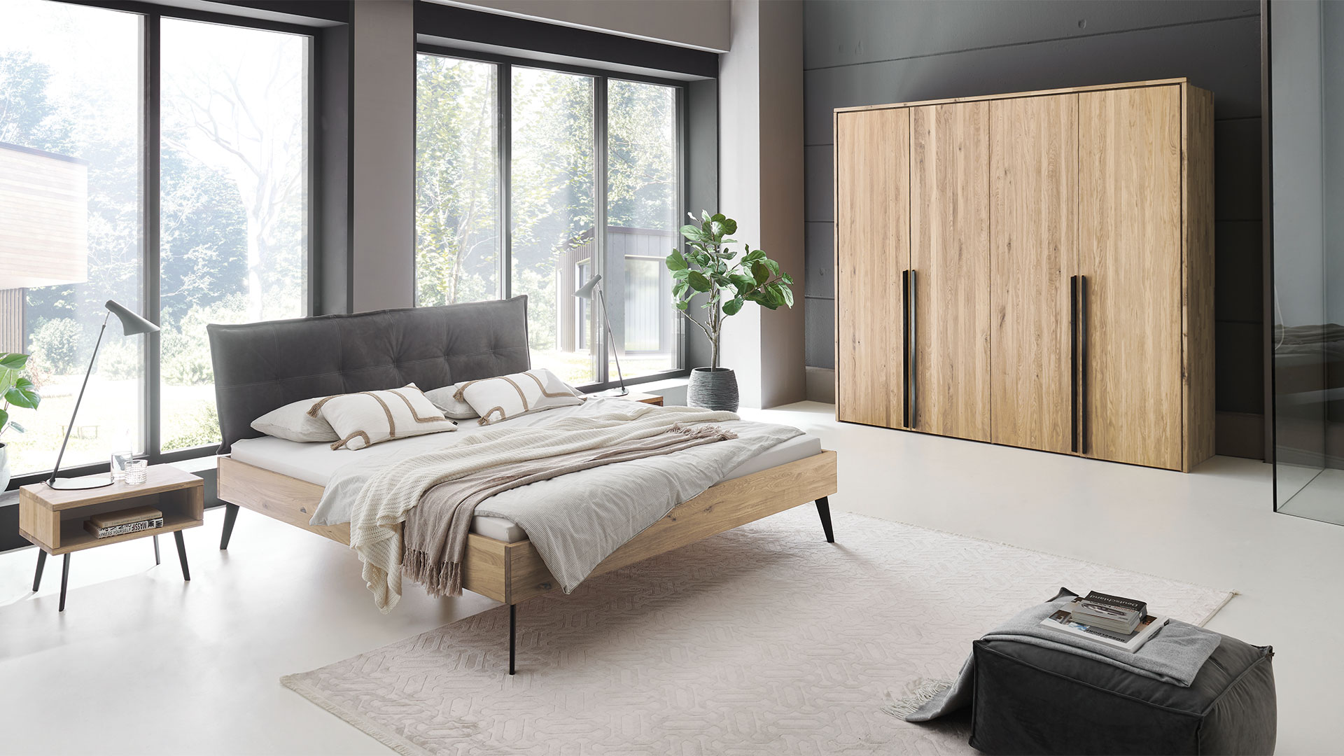 Der Kleiderschrank ist als 2- bis 5-Türer verfügbar und passt daher in verschiedene Schlafzimmer-Größen. Die Inneneinteilung können Sie außerdem mit zusätzlichem Zubehör ganz nach Ihren Bedürfnissen individualisieren. "Albero" vereint Natürlichkeit und Design perfekt - für ein Schlafzimmer voller Stil und Charakter.