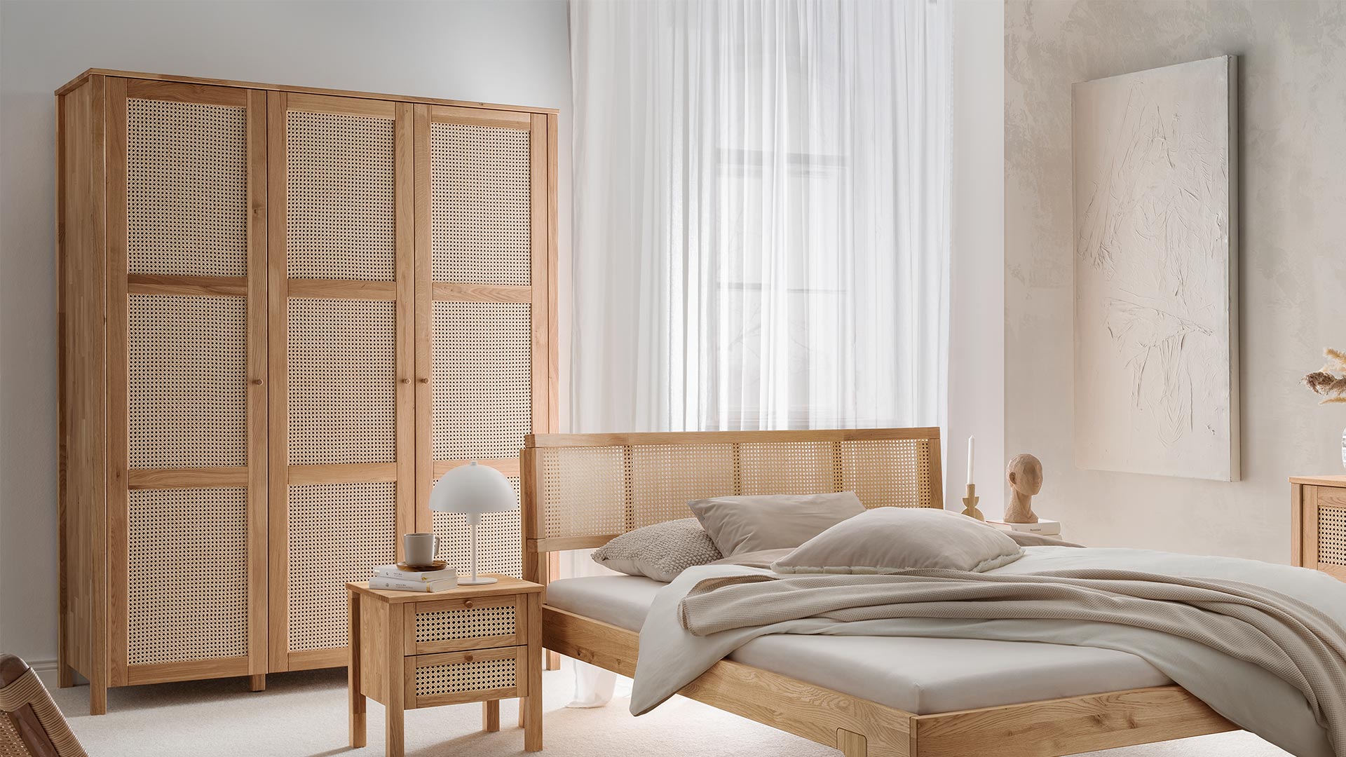... kommt mit dem Kleiderschrank "Belvedere" in Ihrem Schlafzimmer auf. Denn das Wiener Geflecht der Schranktüren lässt den klassischen Stil der Kaffeehauskultur der österreichischen Hauptstadt aufleben.