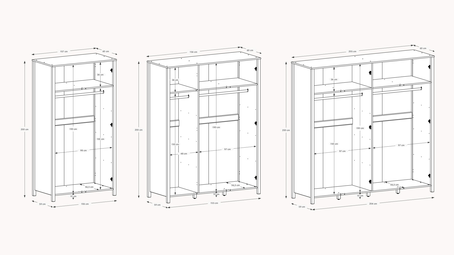 Der Schrank ist in 3 Größen erhältlich. Mit zusätzlichem Zubehör, wie zum Beispiel weiteren Einlegeböden, können Sie den Schrank ganz nach Ihren Vorstellungen personalisieren. Gestalten Sie Ihren Favoriten und gönnen Sie sich wundervolle Wiener Nächte direkt in Ihrem Schlafzimmer.