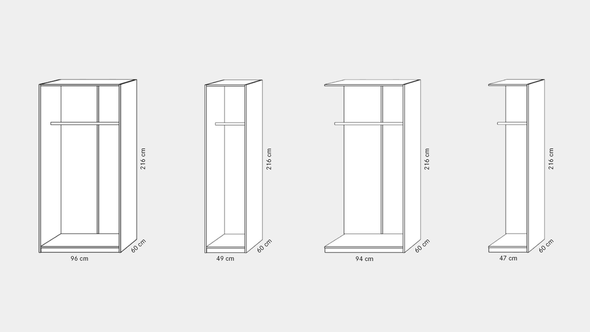 Mit diesen hochflexiblen Einzelmodulen in 2 Rastern kombinieren Sie einfach und schnell Ihren ganz persönlichen Schrank. Basis ist immer ein Grundelement, das Sie in 4 Breiten erhalten. Daran können Sie beliebig viele Anbauelemente anschließen, bei denen Sie ebenfalls die Wahl zwischen 4 Breiten haben. So sind Sie bei der Schrankbreite sehr flexibel und können "Cascano" optimal an Ihren Raum anpassen.