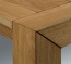 - aufgesetzte Tischplatte mit durchgehenden Lamellen und gerader Kante, Tischbein-Abschluss mit Distanzplatte aus Edelstahl