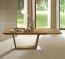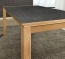 - Tischplatte wahlweise aus Massivholz mit durchgehenden Lamellen, Keramik in anthrazit oder Mattglas in cremeweiß - jeweils mit quer verlaufendem Holzabschluss