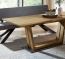 - aufgesetzte Tischplatte mit durchgehenden Lamellen und gerader Kante, u-förmige Holzsäule mit Metall-Einlage, Bodenplatte aus Metall (wahlweise silbergrau oder mattschwarz)