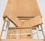 - aufgesetzte Tischplatte mit durchgehenden Lamellen und gerader Kante, x-förmiges Metallgestell mit Mittelsteg aus Massivholz