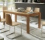 - Tischplatte mit durchgehenden Lamellen und Schweizer Kante - sicher befestigt auf stylisch-markantem Metallbügel, raffiniert schräg zulaufende Tischbeine
