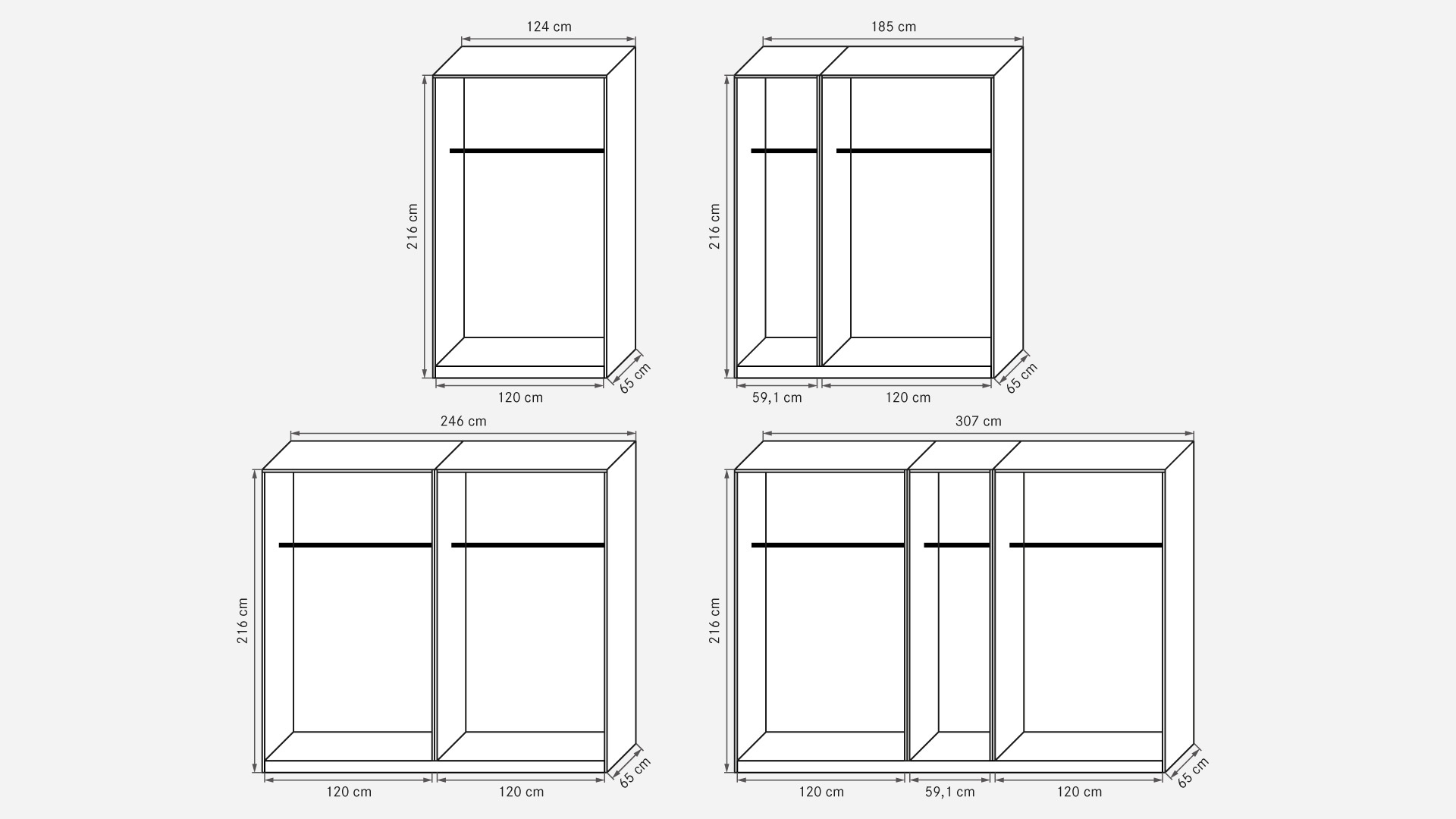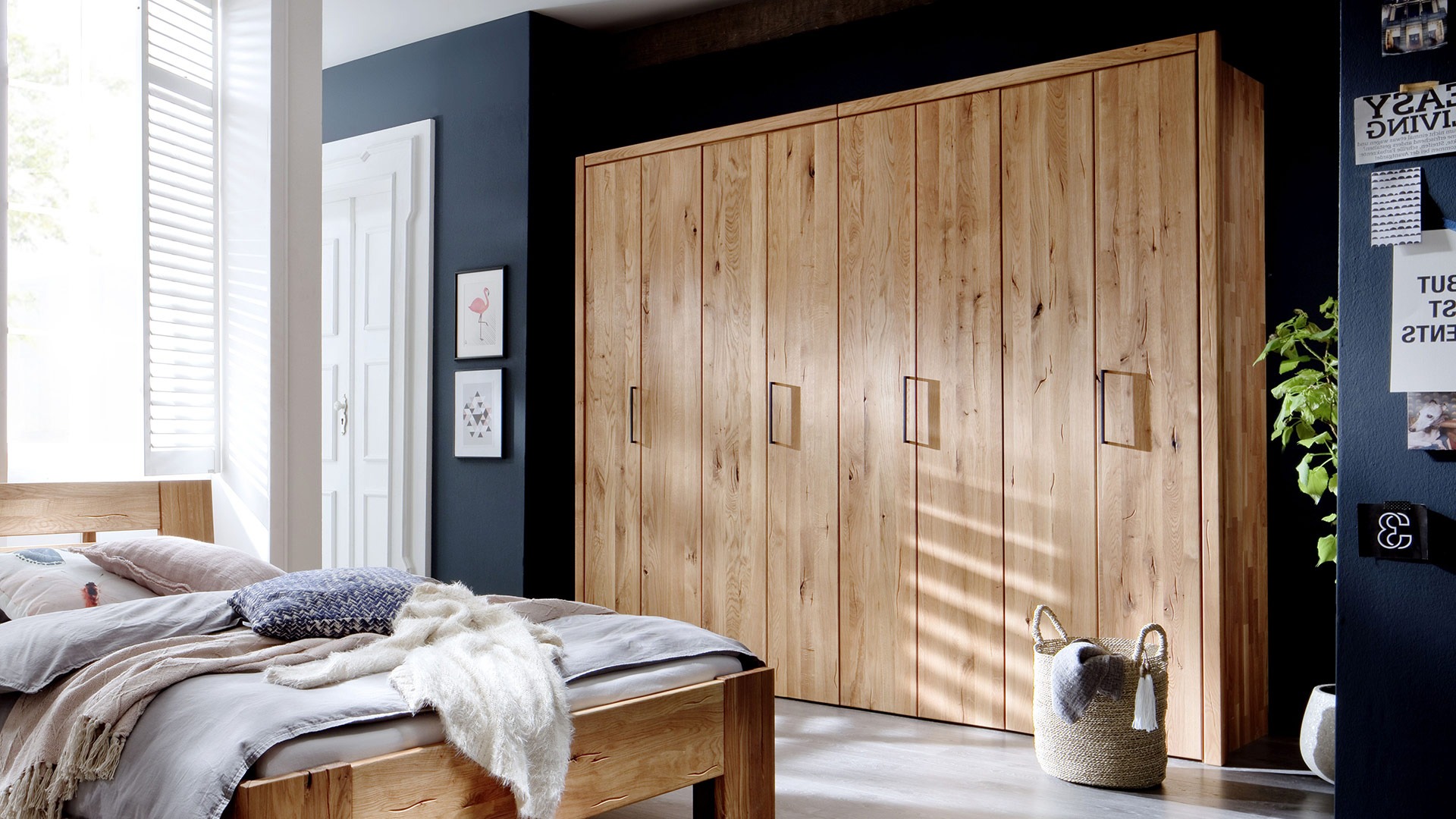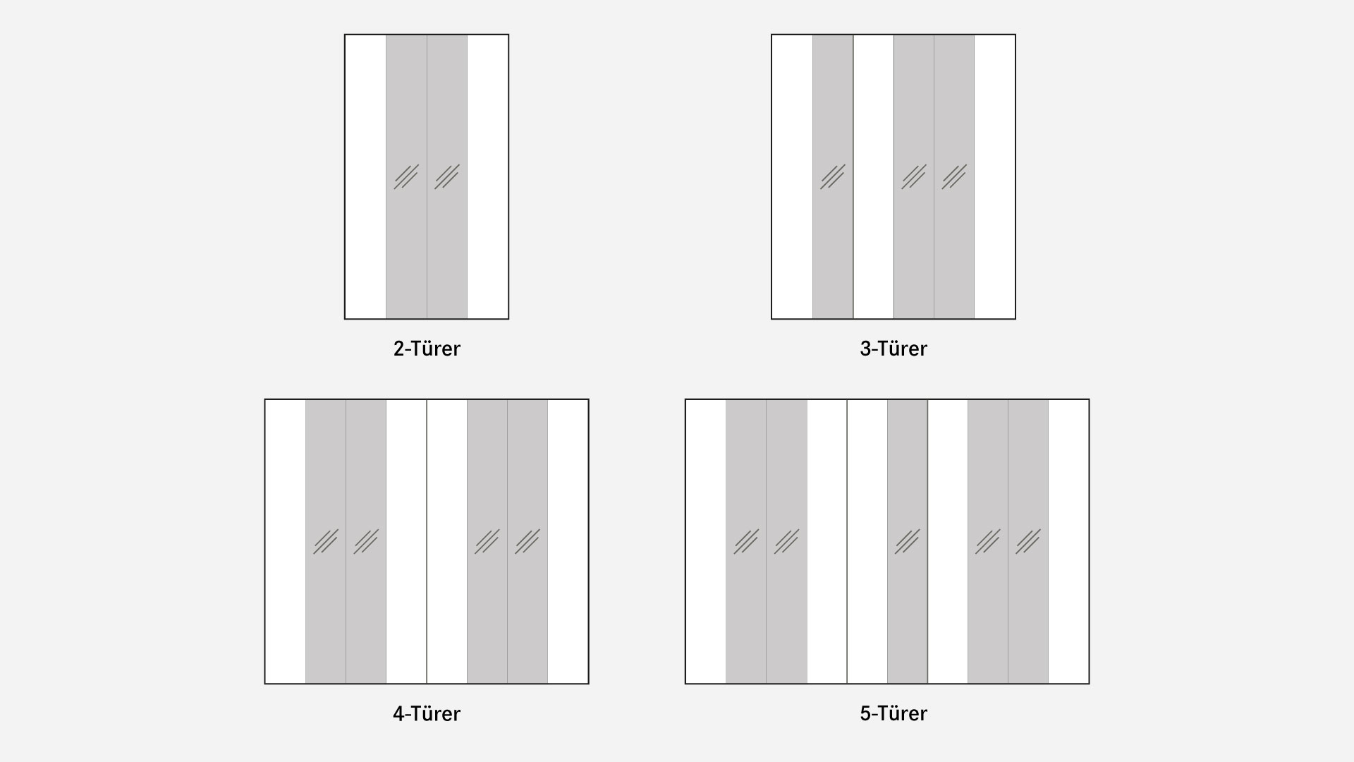 Durch die ausgeklügelte Falttechnik muss bei der Raumplanung nur wenig Platz für schwenkende Türen berücksichtigt werden. So passt "Acordo" auch hervorragend in das etwas kleinere Schlafzimmer. Gerade für kleinere Räume ist auch die Ausführung mit Spiegeltüren optimal, da kein separater Spiegel angebracht werden muss. Je nach Wunsch und Räumlichkeit entscheiden Sie sich für den 2-, 3-, 4- oder 5-türigen Schrank.