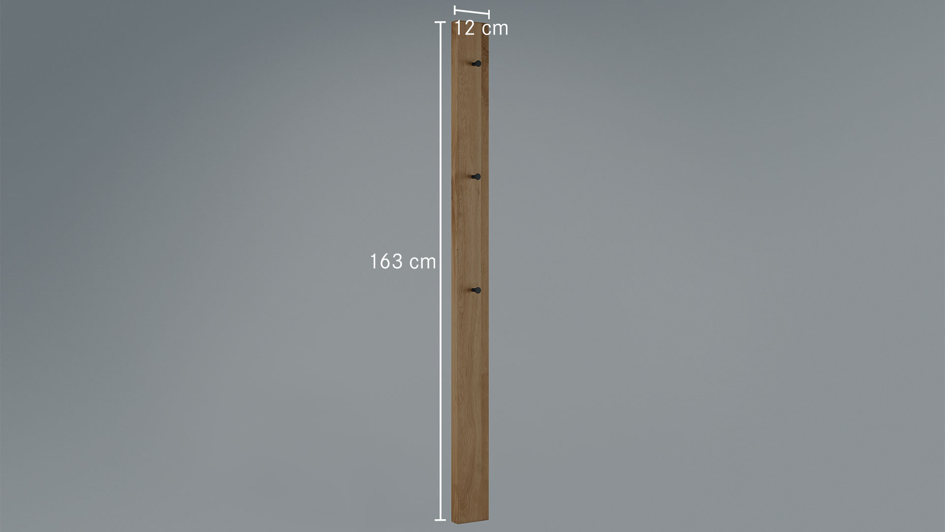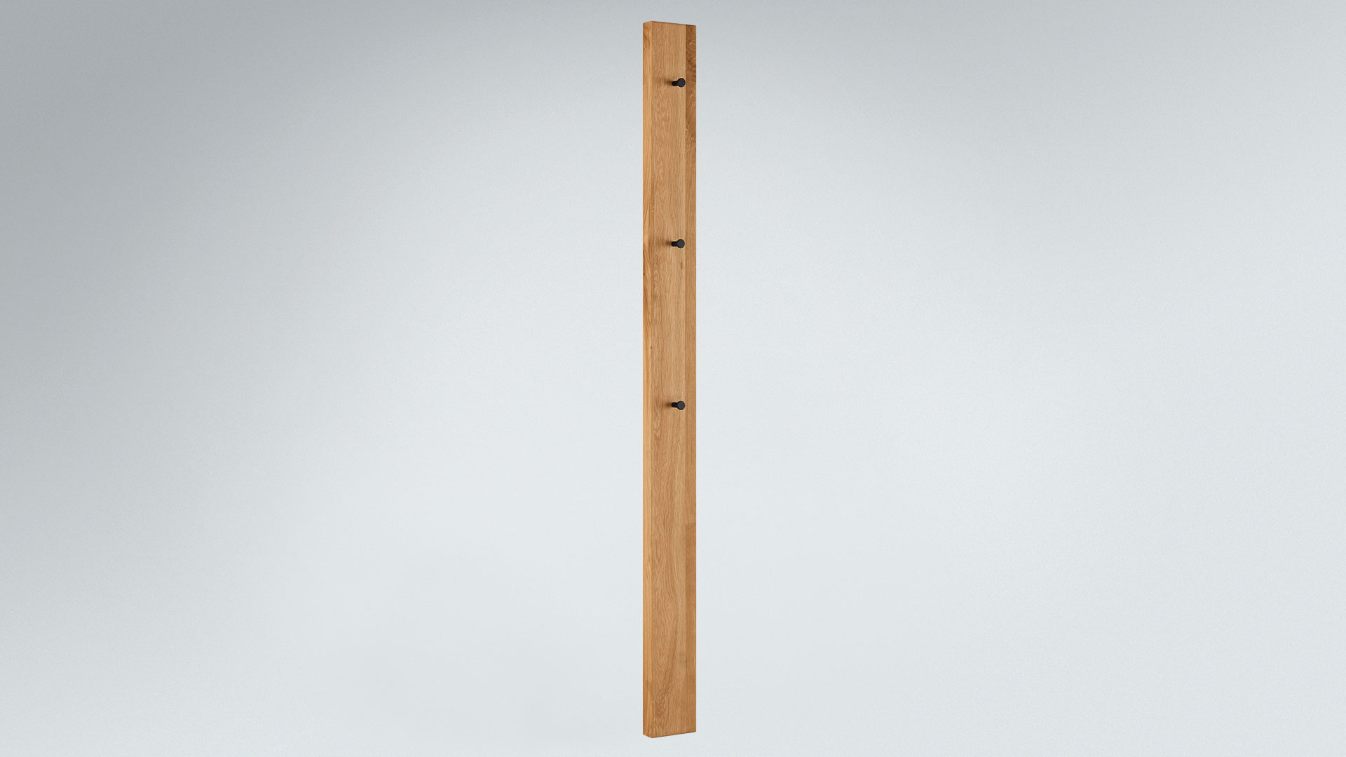 Die trendige Hakenlösung sieht aus wie drei überdimensionale Metallnägel. Das matte Schwarz bildet einen perfekten Kontrast zu dem edlen Wildeichenholz. Und mit mehreren Garderoben-Paneelen schaffen Sie je nach Platzbedarf Ihre individuelle Garderobenlandschaft.