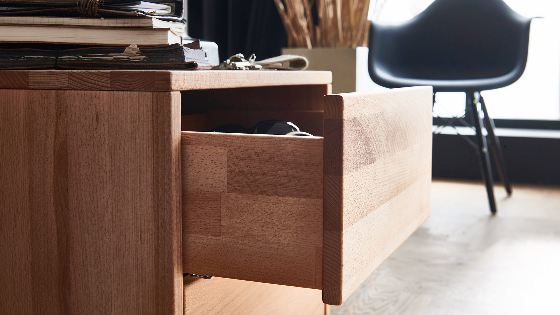 Wählen Sie aus 3 Holzarten Ihren Liebling. Mit der elegant gemaserten Kernbuche oder der markanten Wildeiche mit geölter Oberfläche holen Sie sich auch optisch ein Stück Natur ins Haus. Das Kiefernholz in astfreier Qualität ist dagegen deckend weiß lackiert und wirkt hell und frisch.