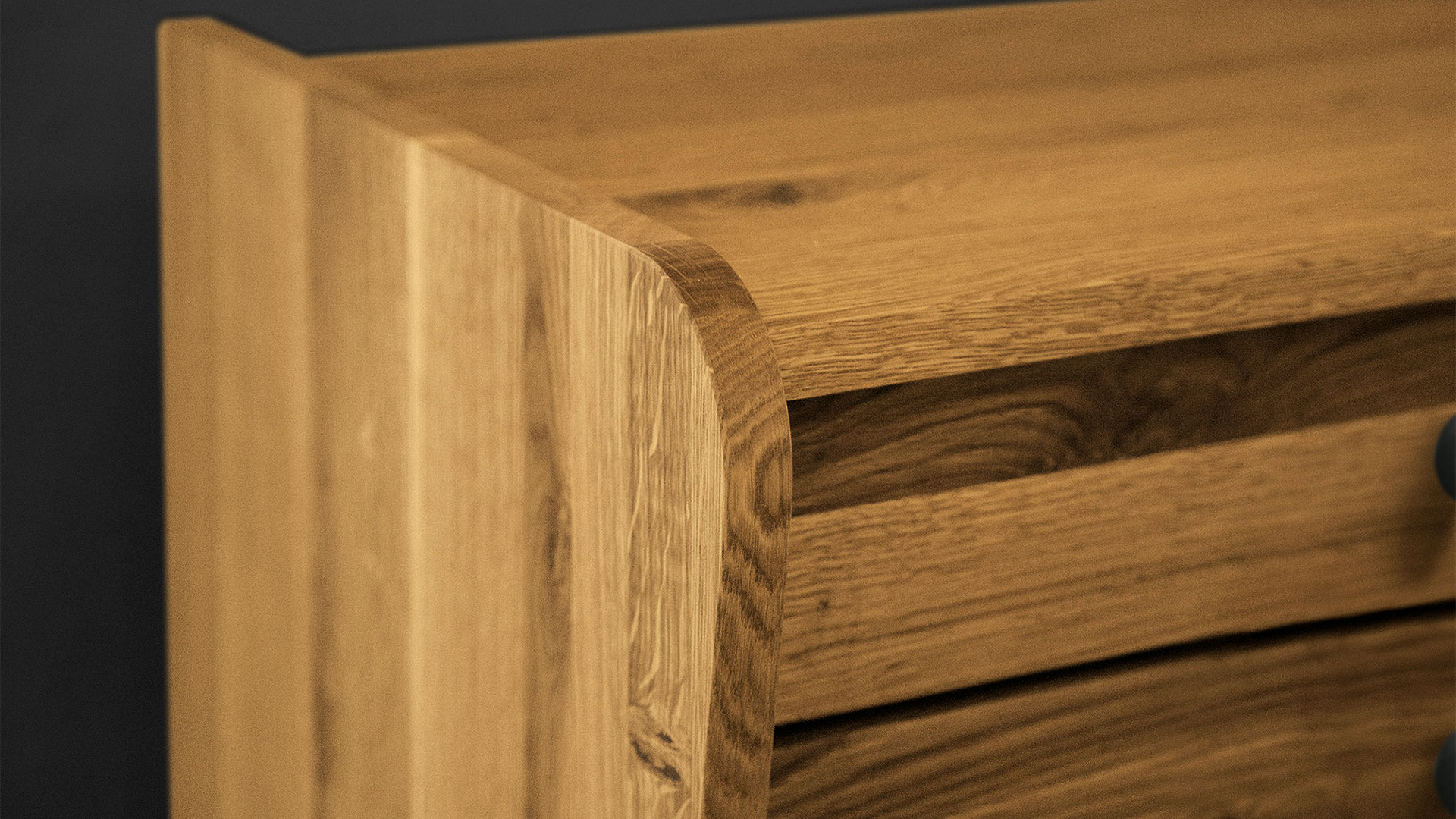 Denn die bequeme Kaltschaum-Polsterung der Bänke macht das Schuhe anziehen im Sitzen zum wahren Vergnügen. Liebevolle Details verführen Sie zu einer faszinierenden Zeitreise: Die etwas zurückgesetzte Front wird von oben sorgfältig abgerundeten, nach vorne gezogenen Seitenteilen umrahmt. Die Bankbeine sind handwerklich perfekt schräg in die markante Zarge eingearbeitet. Schwarze Knopfgriffe aus Metall runden das Gesamtbild ab.