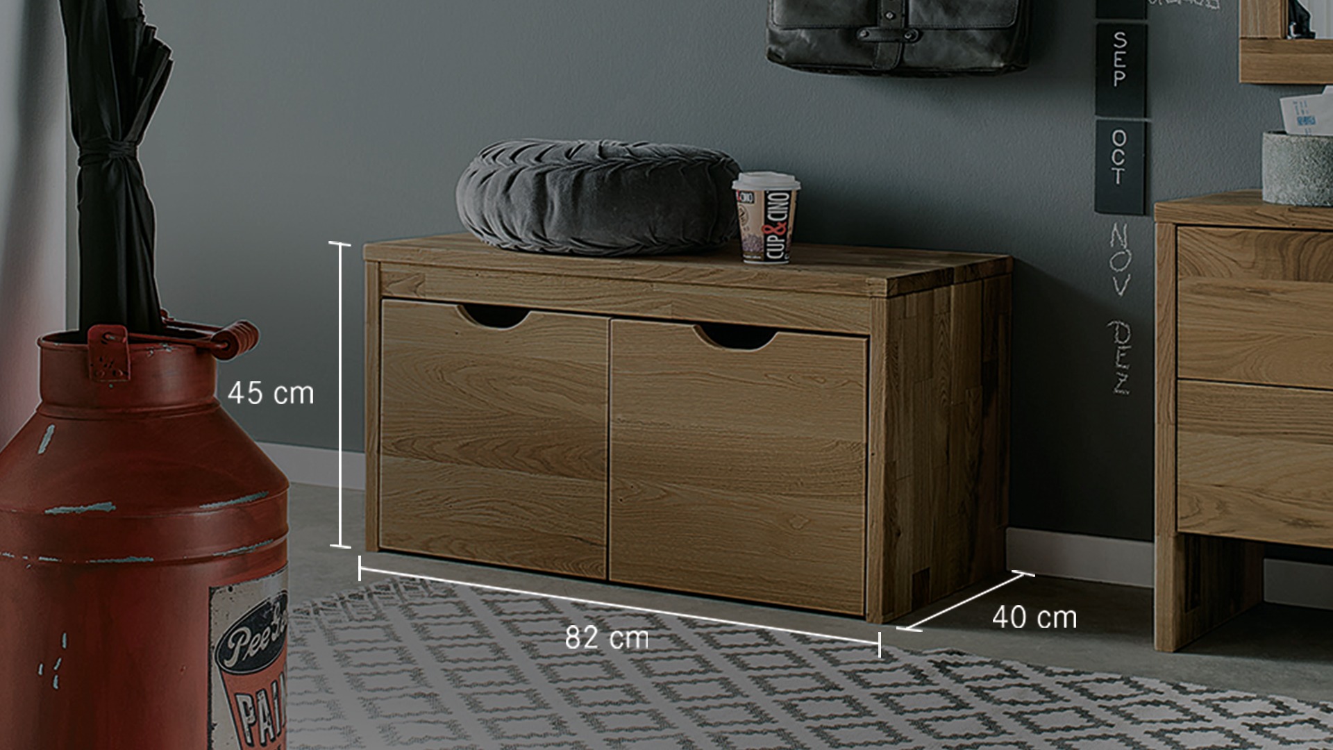 Diese Garderobenbank aus massivem Kernbuchen- oder Wildeichenholz wird Sie begeistern. Ob Sie einen kurzweiligen Abstellplatz benötigen, sich zum Schuhe binden lieber setzen oder noch schnell einen Anruf erledigen und sich kurz niederlassen - "Tenero" ist allen Anforderungen gewachsen. Doch damit nicht genug.