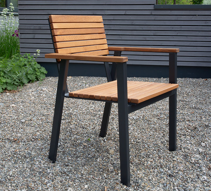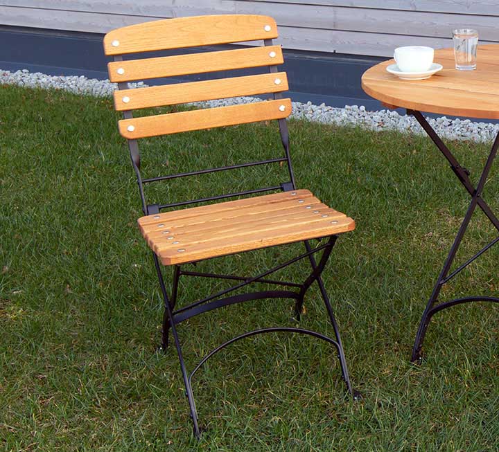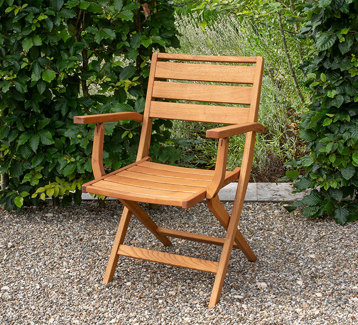 Viele unserer Stühle, ob klappbar oder nicht, sind in einer Variante mit Armlehnen verfügbar.