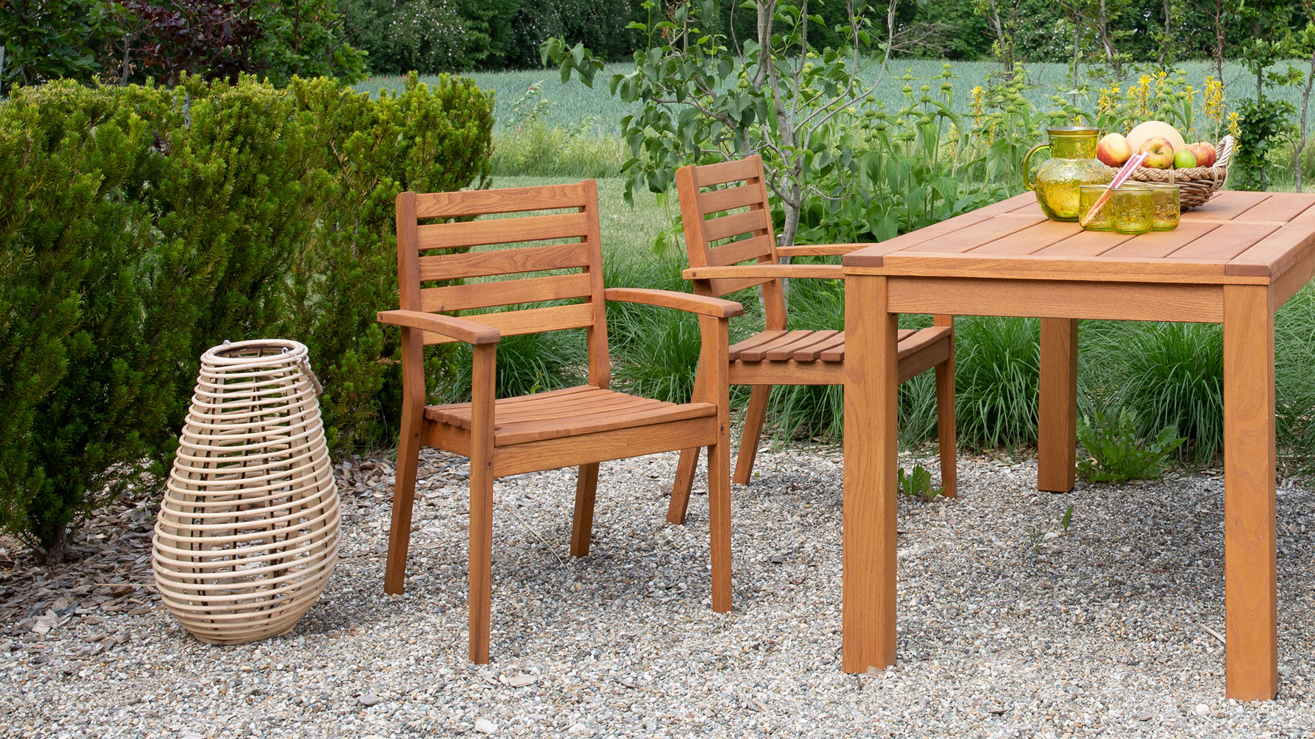 Das Gartenmöbel-Programm "Trevia" lädt ein zu gemütlichen Stunden. Die massive und robuste Optik wird durch die Lamellenstruktur der Tisch- und Sitzflächen leicht aufgelockert. Die längs angeordneten Lamellen vom Tisch und der Bank werden attraktiv durch einen massiven Holzrahmen eingefasst und mittig durch eine stylische Zierleiste aufgepeppt. Freuen Sie sich auf unzählige lustige Spiele- und Grillabende mit lieben Freunden und der ganzen Familie.