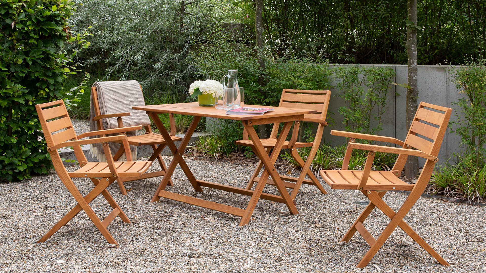 Die praktischen Gartenmöbel der Serie "Estiva" in sommerlich-leichter Optik sind durch ihre Klappfunktion supermobil und - wenn sie einmal nicht benötigt werden - platzsparend lagerbar. Verbringen Sie lauschige Sommerabende mit Familie und Freunden auf Ihrer Terrasse oder auf Ihrem Balkon.