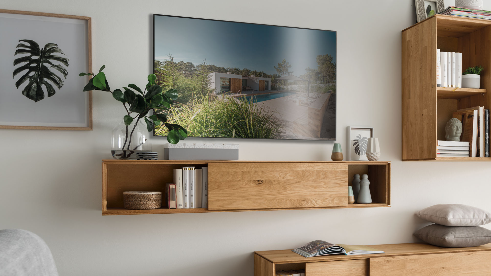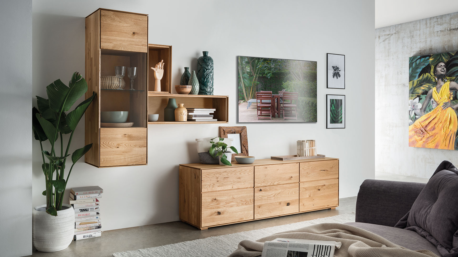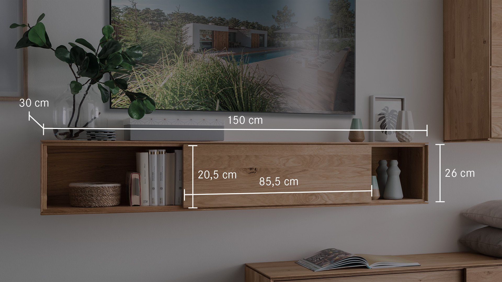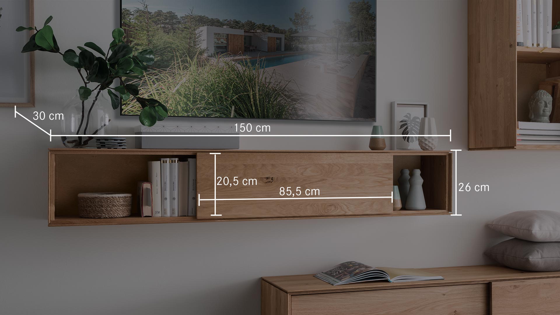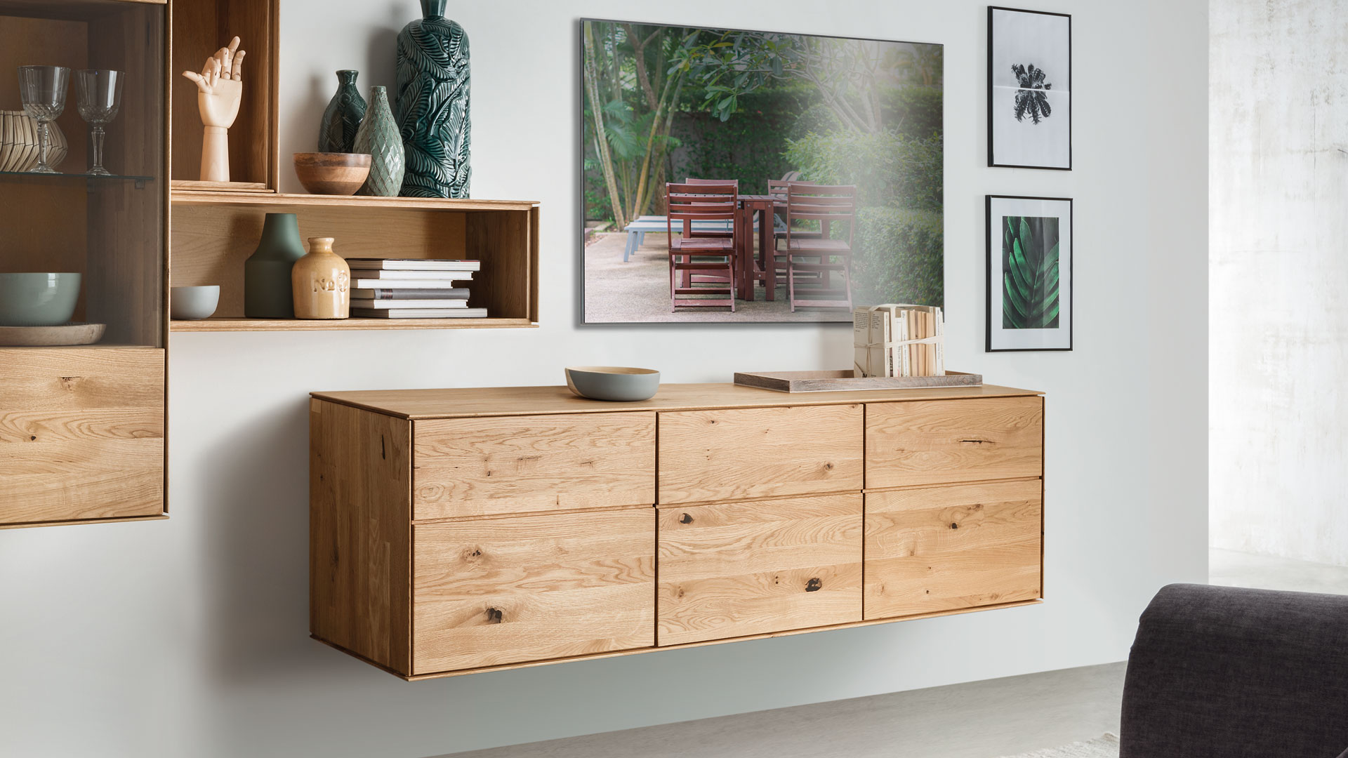 Leichtigkeit und Moderne - das ist die gestalterische Botschaft dieses Wohnmöbel-Programmes. Möchten Sie "Civenna" an die Wand hängen oder auf den Boden stellen?