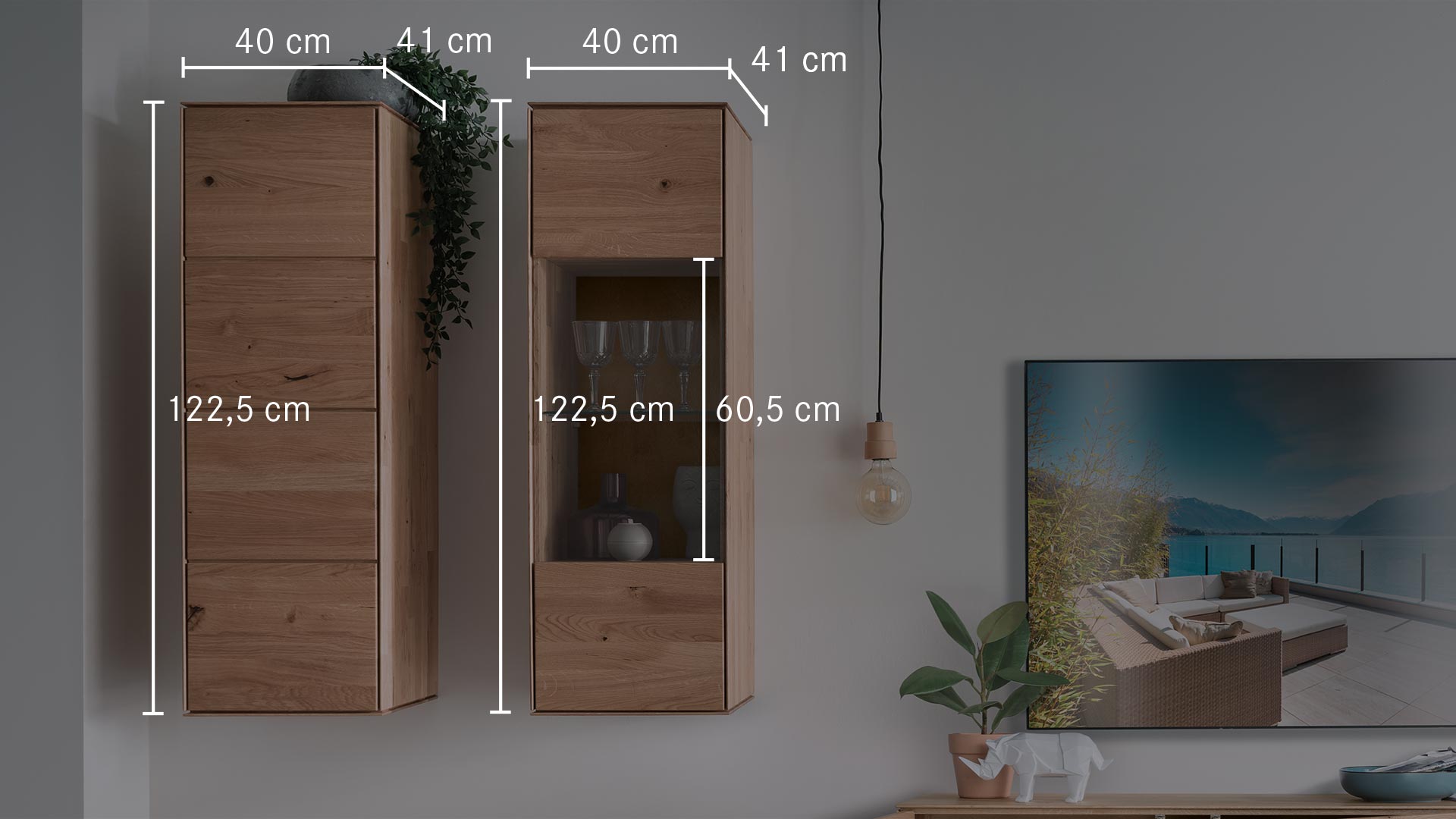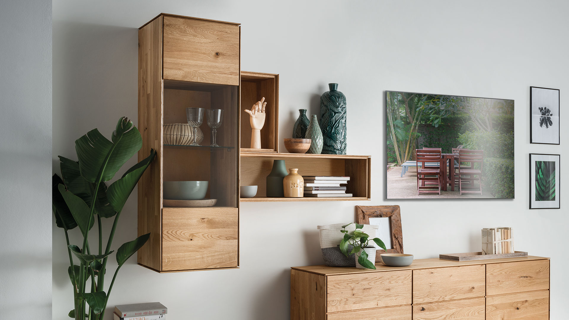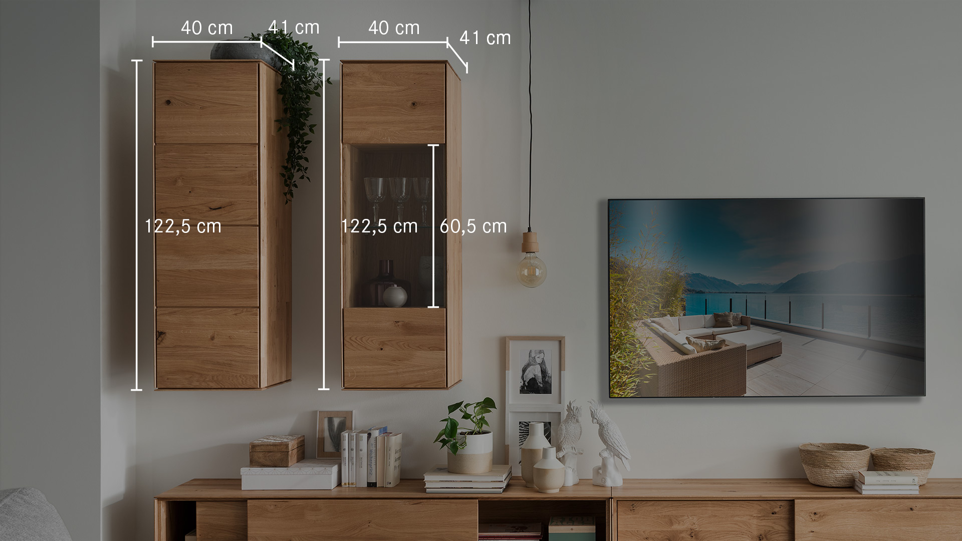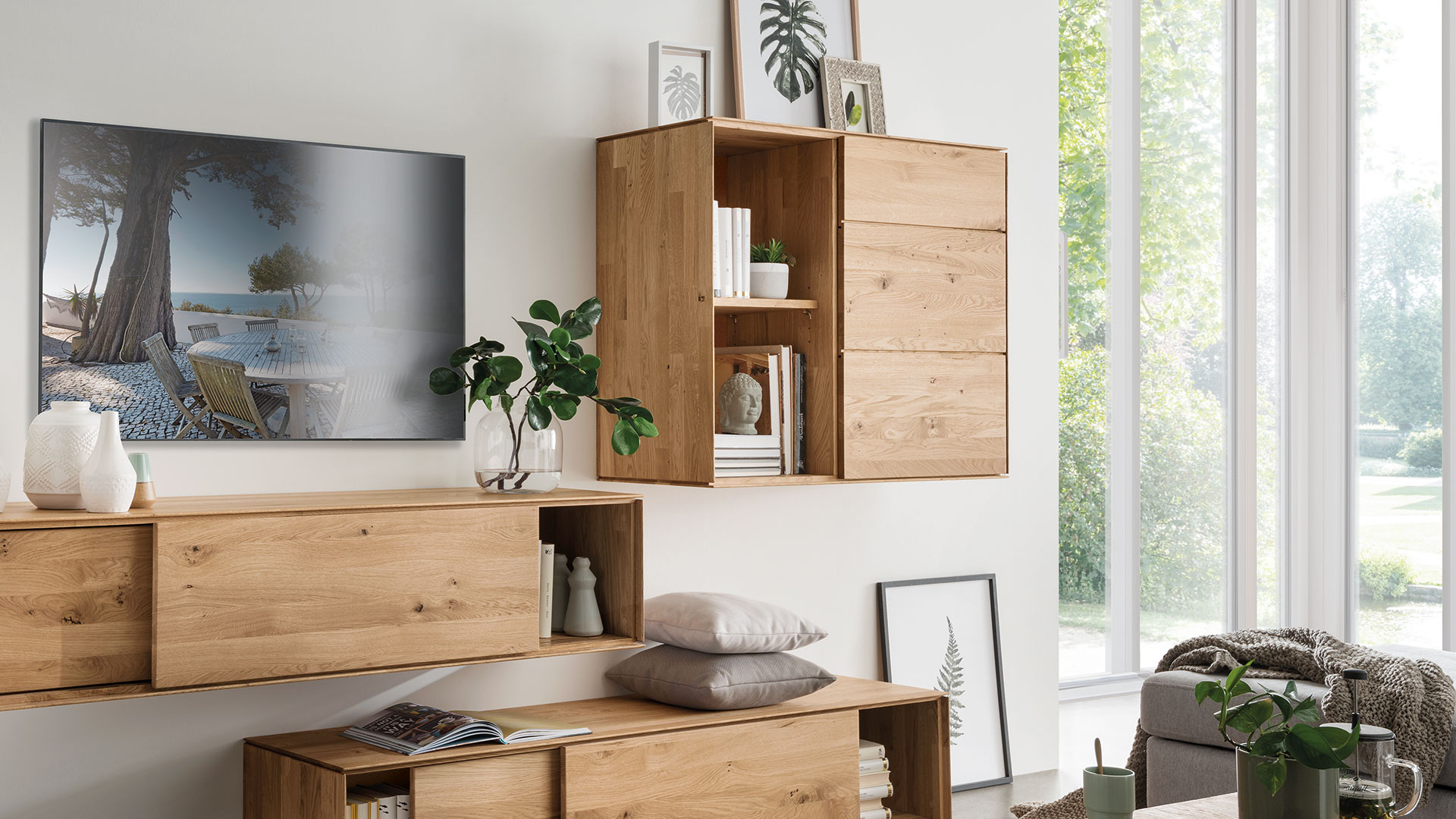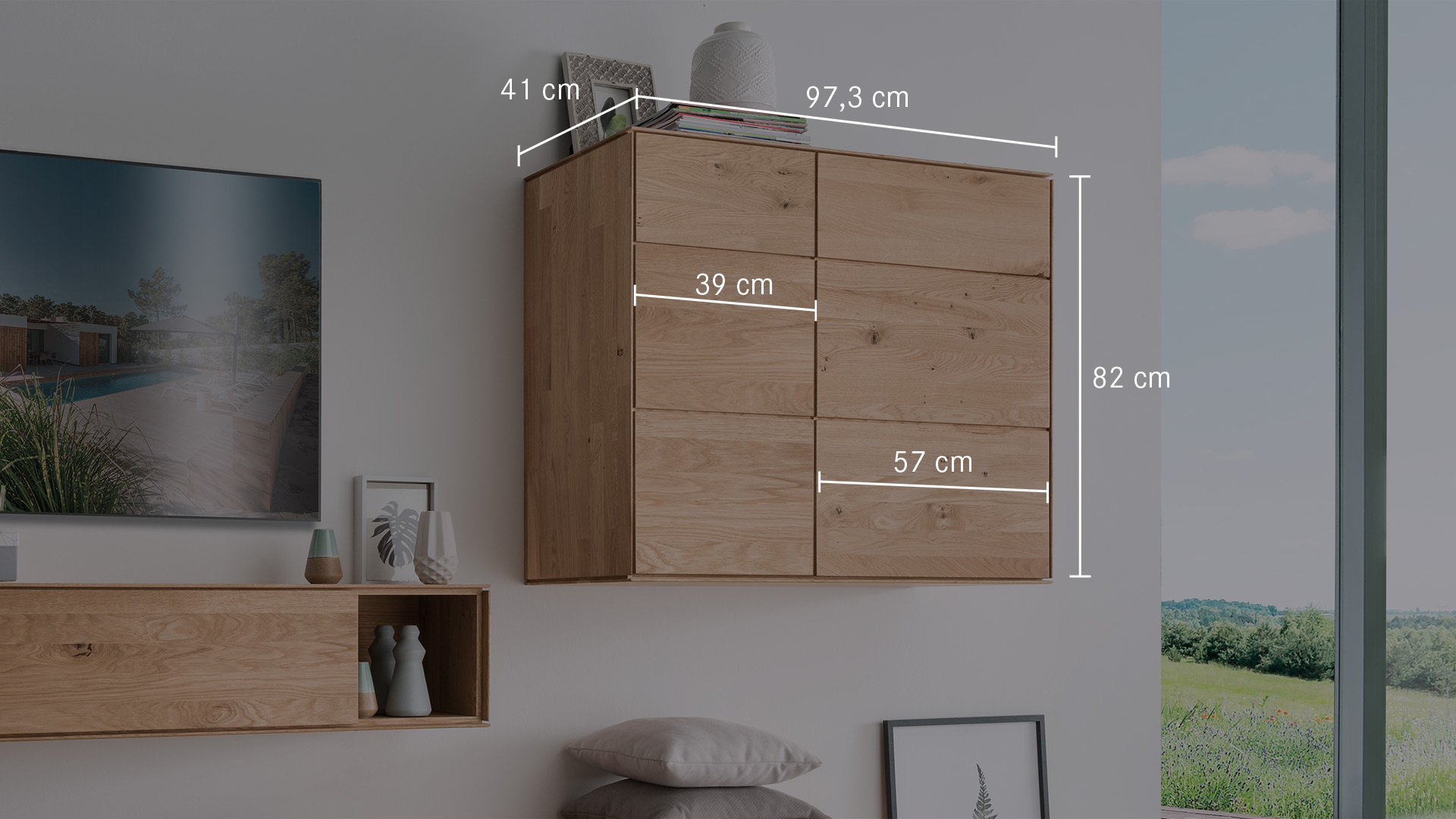 Leichtigkeit und Moderne - das ist die gestalterische Botschaft dieses Wohnmöbel-Programmes. Sie benötigen einen länglich-schlanken oder etwas breiteren Hängeschrank?