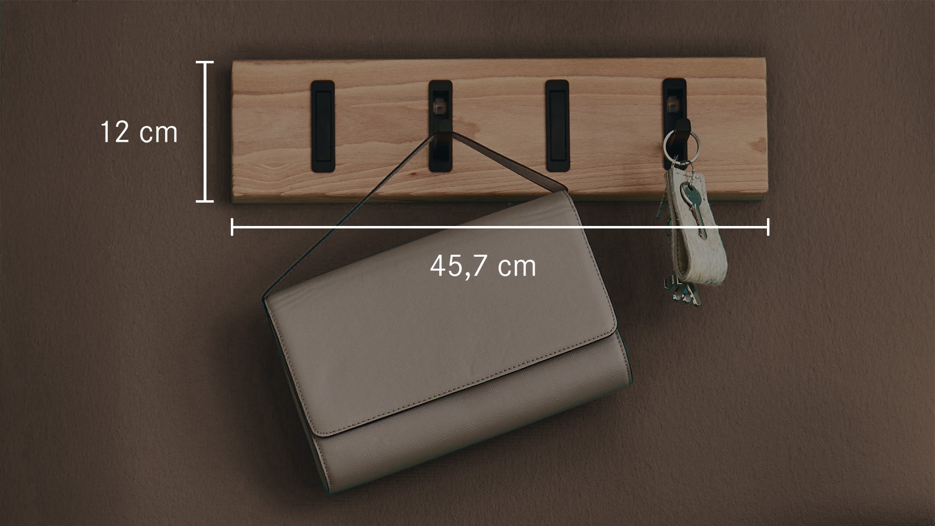Das macht "Vestido" auch zur optimalen Kleingarderobe für Gäste, besonders wenn es eng hergeht. Denn wenn die Garderobe nicht gebraucht wird, nimmt sie mit eingeklappten Haken kaum Platz weg und niemand kann im Vorbeilaufen an den Haken hängen bleiben.