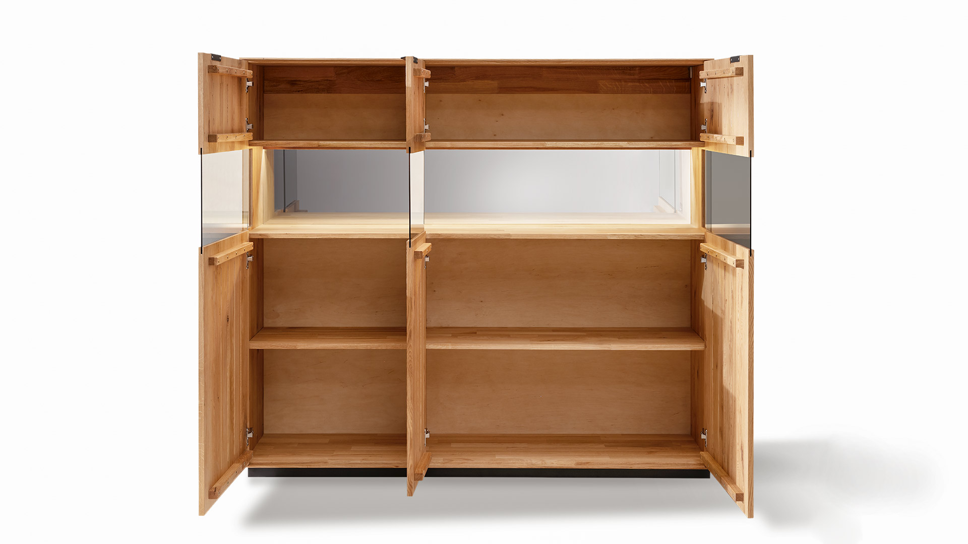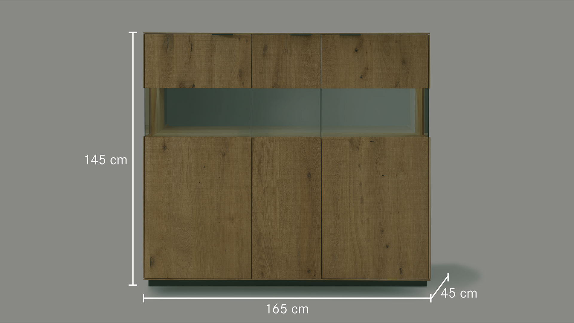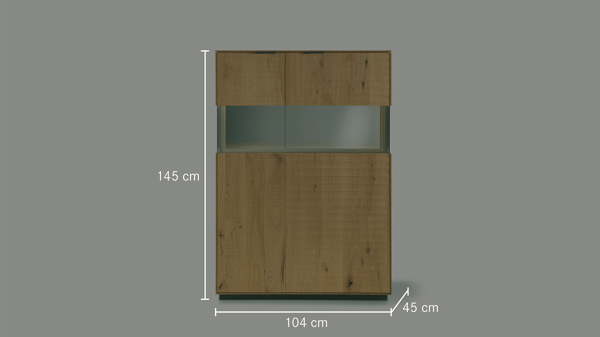 Highboard "Eterna" ist in 3 Größen erhältlich, bietet großzügigen Stauraum, flexible Ablagemöglichkeiten und passt so mühelos in Ihr Zuhause.