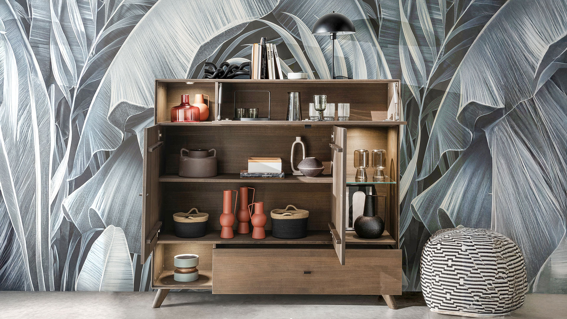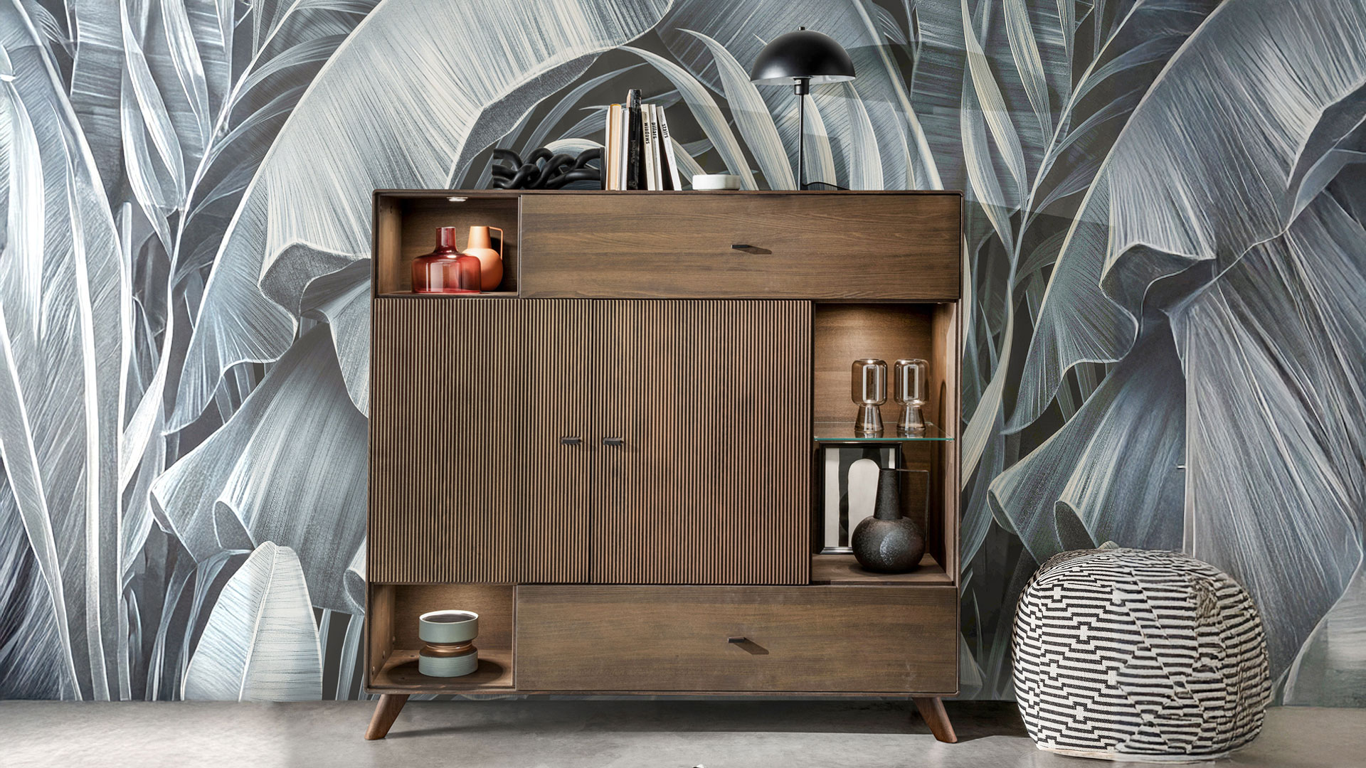 Sie haben die Wahl zwischen zwei Varianten: Die erste Version bietet großzügigen, geschlossenen Stauraum hinter zwei Türen – ideal für alles, was ordentlich verstaut werden soll. Die zweite Variante kombiniert geschlossene Fächer mit offenen Ablagen und Glaseinsätzen, die Ihre Lieblingsdeko perfekt in Szene setzen. Auf Wunsch hebt die als Zubehör erhältliche LED-Beleuchtung Ihre schönen Stücke stilvoll hervor.