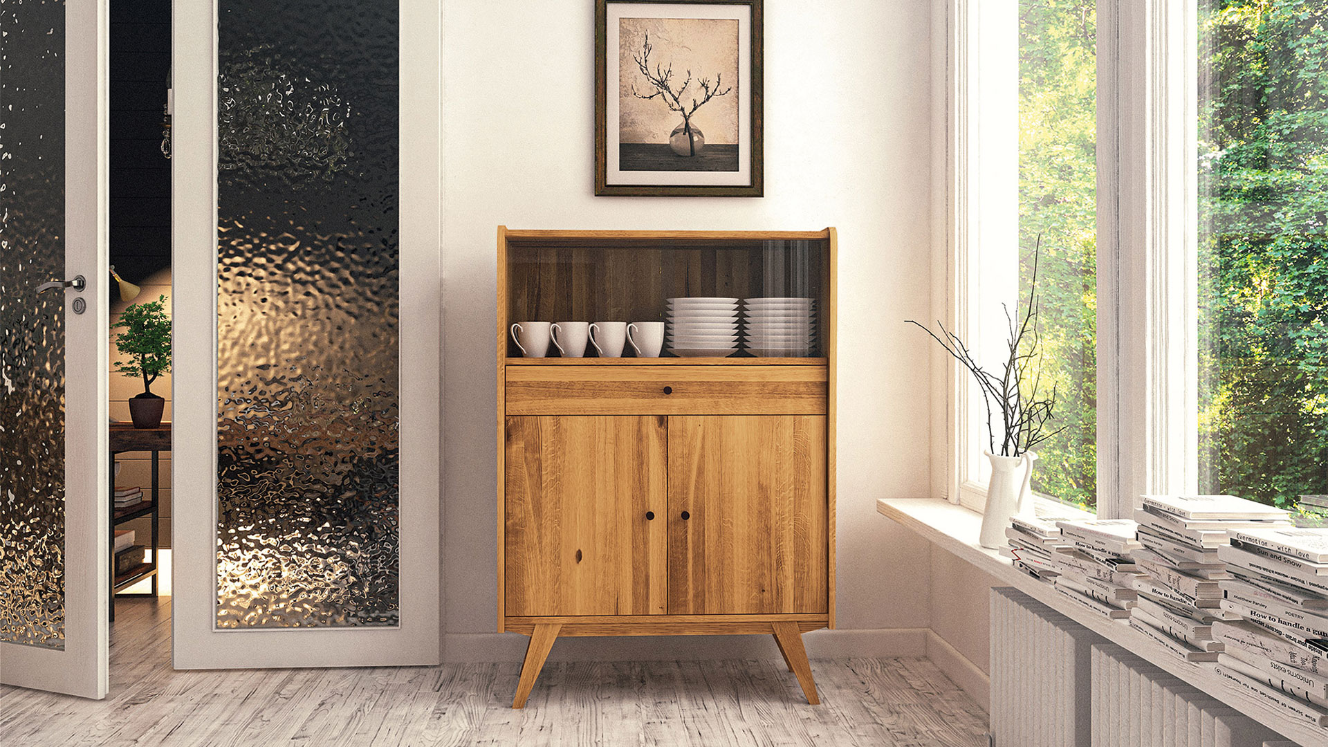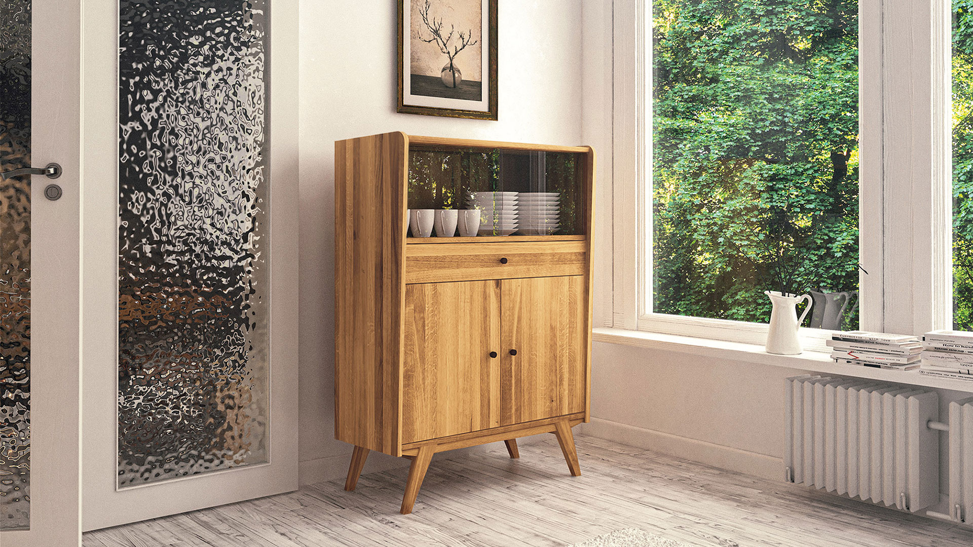 Dieses handwerkliche Meisterstück aus Massivholz verzaubert Ihr Heim mit dem Charme der 50er Jahre. Lassen Sie sich von den liebevollen, authentischen Details zu dieser kleinen Zeitreise verführen: