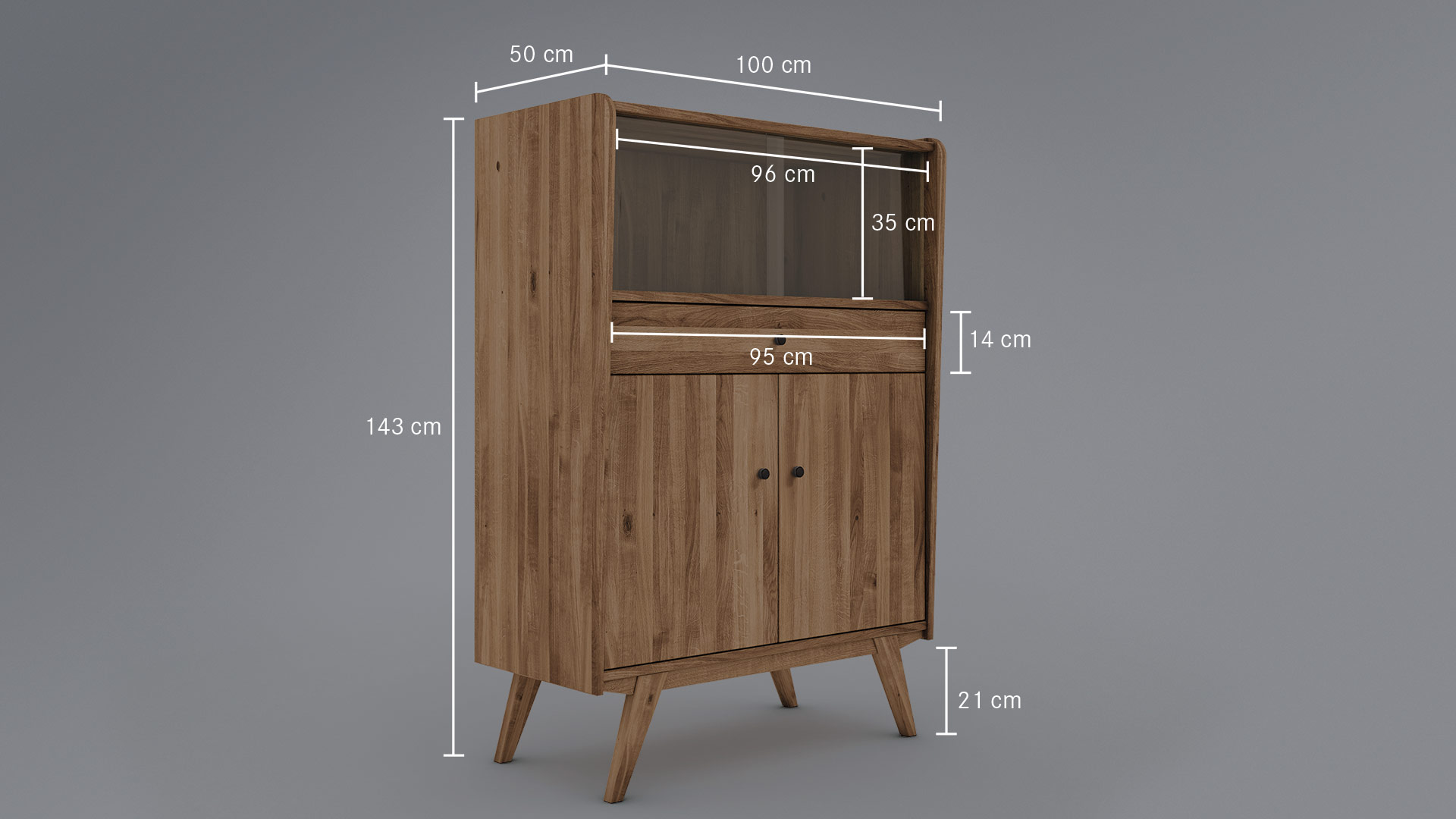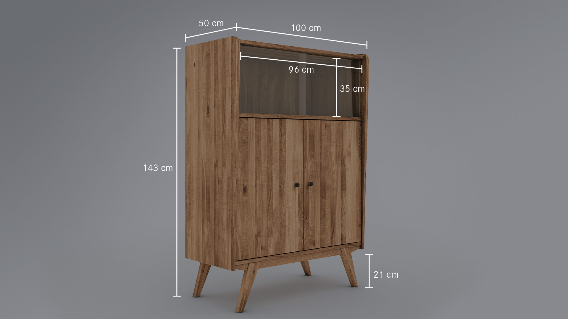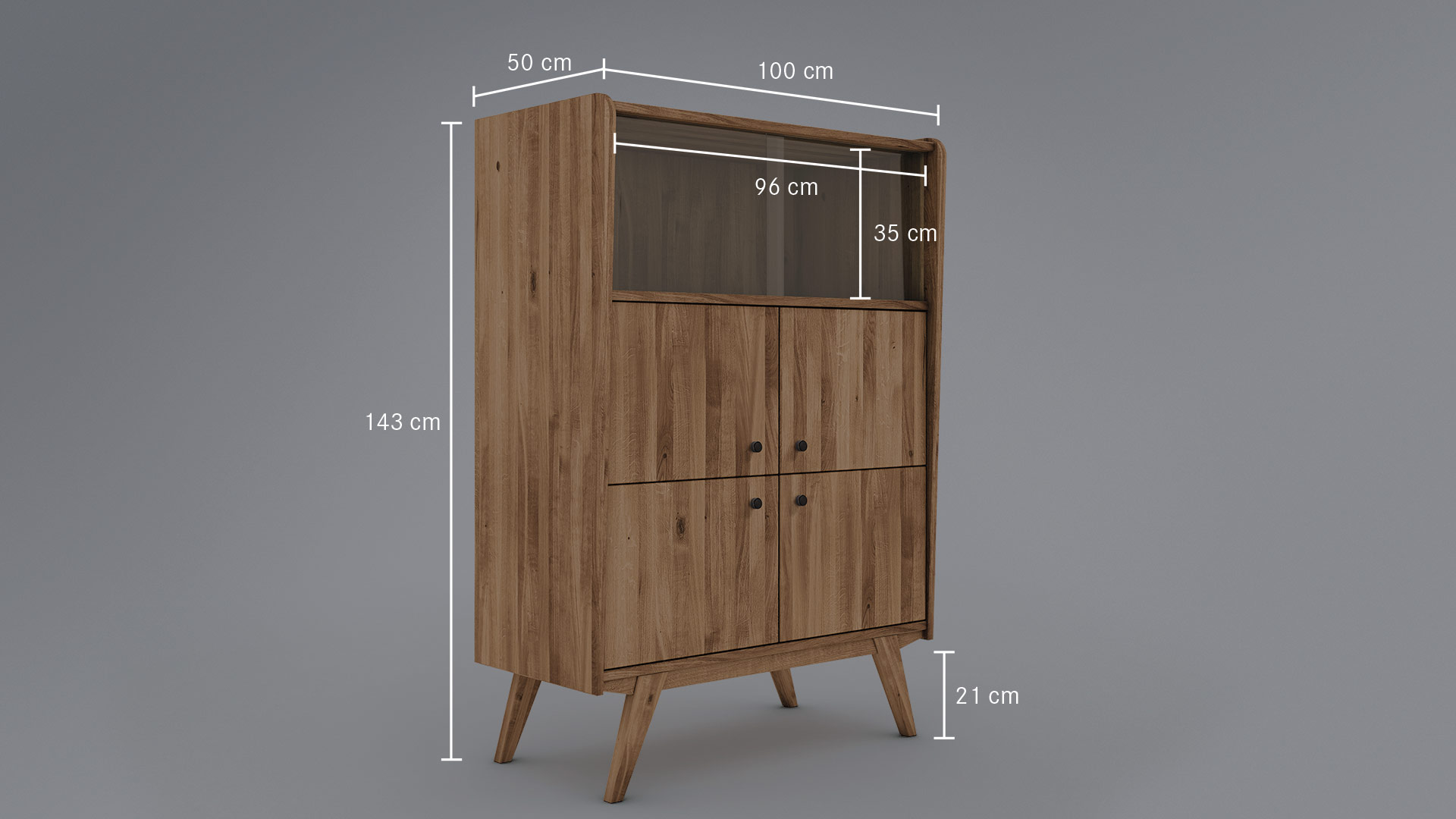 Die klaren Glas-Schiebetüren haben stilecht eingefräste Griffmulden. Die glatte Front des Highboards ist etwas nach innen versetzt und wird von sorgfältig abgerundeten Seitenteilen eingerahmt. Das edle Massivholz-Highboard hat eine markante Zarge, in die hohe Schrankfüße schräg eingearbeitet sind. Schwarze Knopfgriffe aus Metall machen das Gesamtbild perfekt. Sie erhalten "Lasala" wahlweise in massiver Kernbuche oder Wildeiche. Wir bieten das markante Highboard in 4 Varianten an - entscheiden Sie selbst, welche am besten in Ihr Zuhause passt.