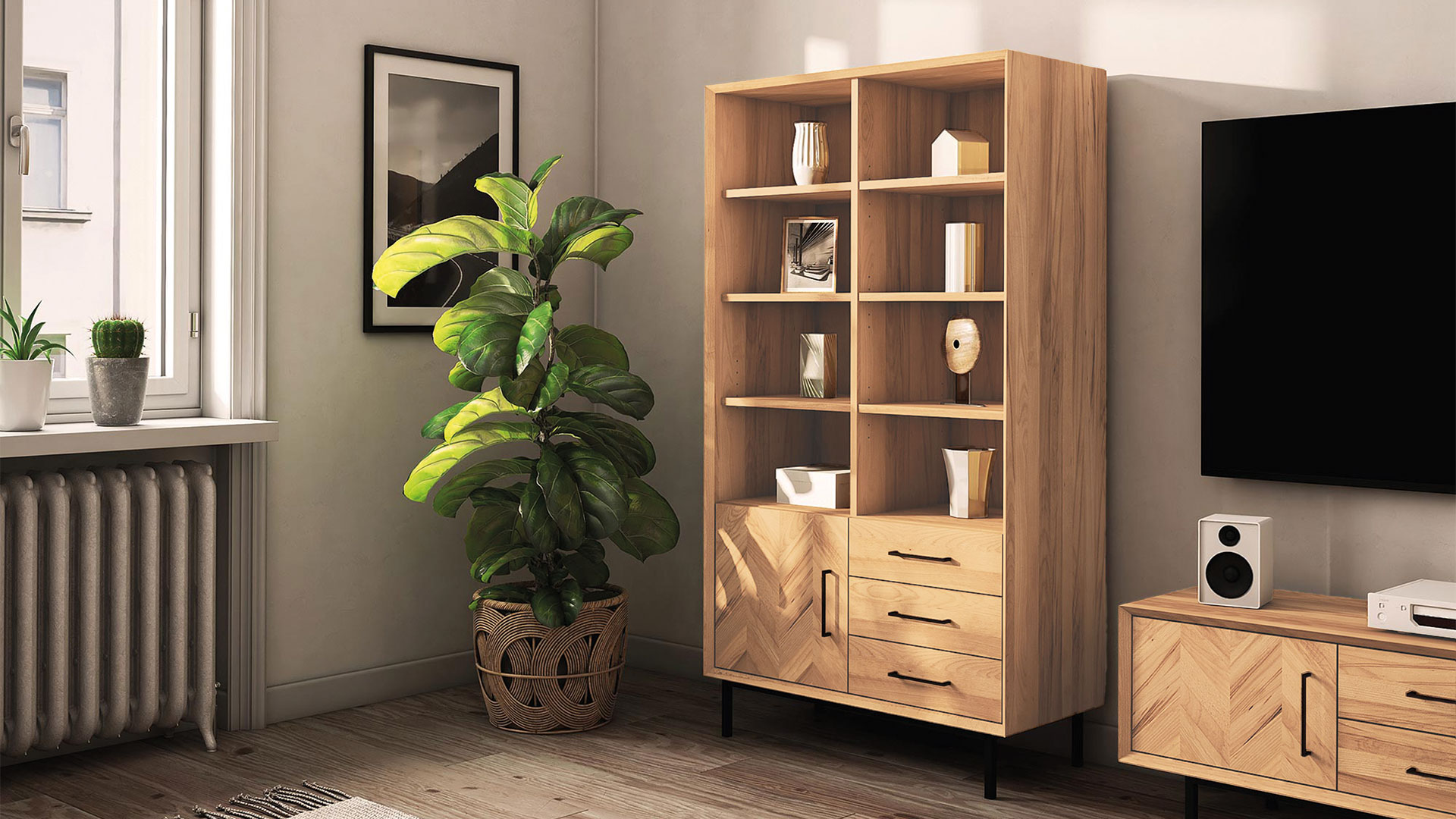 "Parquetta" präsentiert sich mit seinem aktuellen Materialmix im modernen Industrial Design. Wir bieten Ihnen 3 ganz unterschiedliche Varianten des eleganten Highboards an, die Ihnen im ganzen Haus nützlich sein werden.