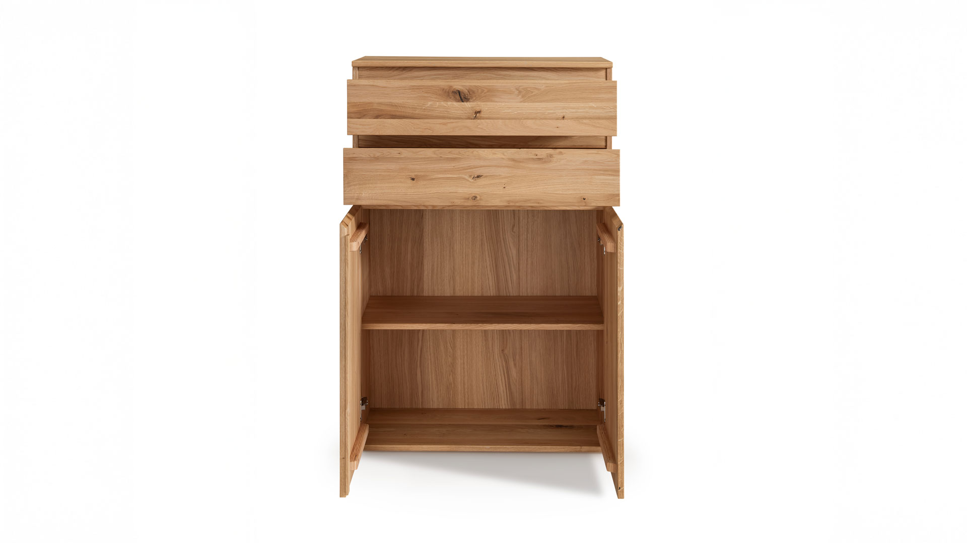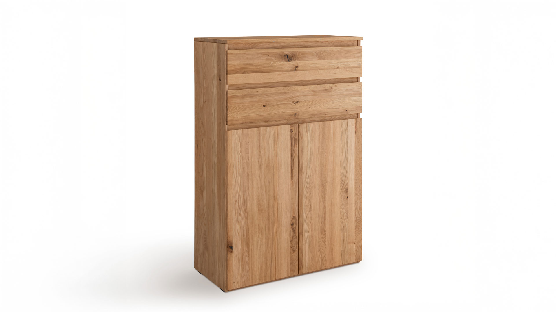 Highboard "Rivana" bringt natürliche Ordnung und spürbare Wertigkeit ins Zuhause oder ins Büro. Massive Wildeiche schafft mit ihrer warmen Maserung eine ruhige Atmosphäre und unterstützt konzentriertes, entspanntes Arbeiten. Höhenverstellbare Fachböden passen sich flexibel an Unterlagen, Akten oder Wohnaccessoires an. Die hochwertigen Fronten unterstreichen den massiven Charakter. Mit Sorgfalt und Sachverstand gefertigt in Deutschland – für langlebige Qualität mit Stil.