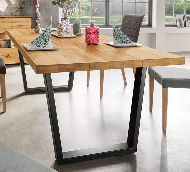 Der Essbereich ist das Herz einer jeden Wohnung - egal ob WG oder Familie. Moderne Tische aus Massivholz - mal skandinavisches Design, mal im Industriestil mit Metallkufen - kombiniert mit einem schönen Freischwinger oder einem klassischen Stuhl laden zum Platznehmen ein. Sideboards, Regale und Lowboards im gleichen Stil ergänzen Ihren Wohn- und Essbereich optimal.