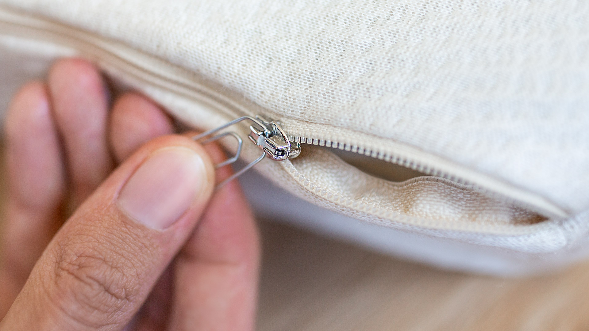 Jersey-Doppeltuch aus 68 % Bio-Baumwolle/kbA und 32 % Lyocell/Tencel, ungebleicht im natürlichen Crèmeton. 3-seitiger Reißverschluss. Bei maximal 60 °C waschbar und trocknergeeignet.