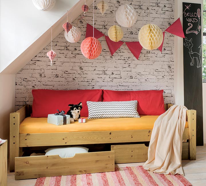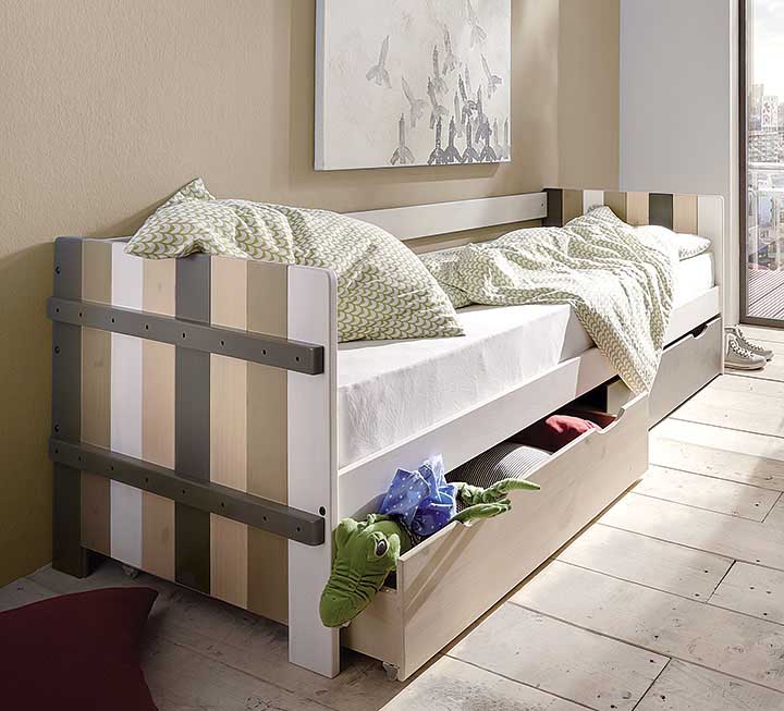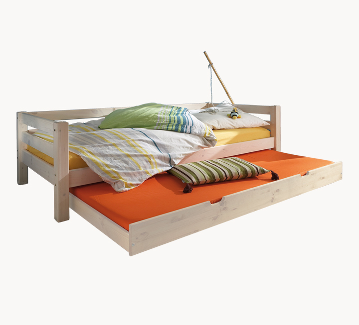 Diese gemütlichen Einzelbetten aus schönem Massivholz werden nach strengen Kriterien in solider Handwerks-Arbeit kindgerecht gefertigt. Sie eignen sich perfekt als "erstes großes Bett" in sicherer Höhe und sind auch der ideale Schlafplatz für Schulkinder bis weit ins Teenager-Alter. Tagsüber dienen diese unkomplizierten Kinder-Betten als bequemer Sofa-Ersatz, auf dem es sich wunderbar relaxen, schmökern oder lernen lässt. Auch der Spielspaß kommt natürlich nicht zu kurz: Das Bett wird mithilfe der Fantasie ganz nach Bedarf schnell zur Märchenkutsche, zum Piratenschiff oder zur einsamen Insel.