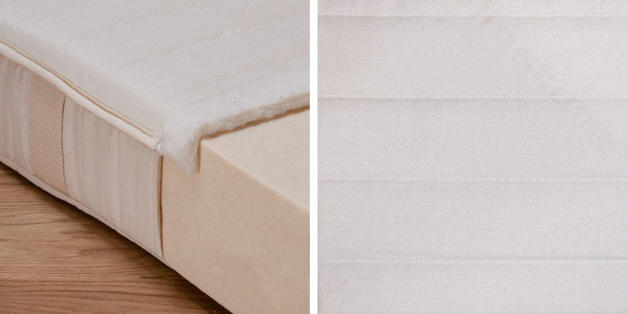 Baumwoll-Bezug "Standard" aus 100 % Bio-Baumwolle, wahlweise versteppt mit Bio-Baumwolle/kbA oder Schafschurwolle.